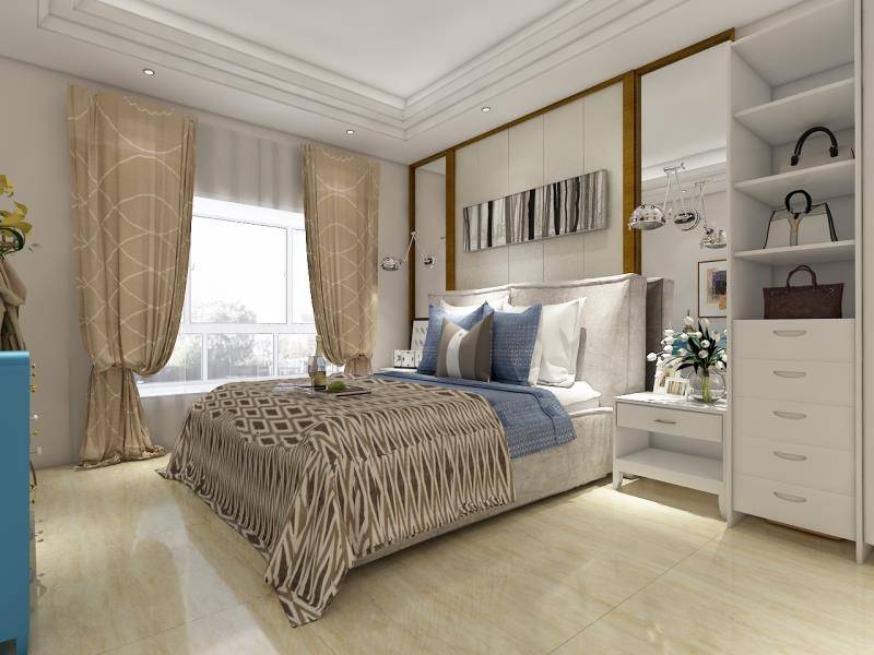 俗語說“金秋”顧名思義黃色是秋天的主色調,就如本案。黃色的地板與黃色的窗簾相呼應,一絲絲涼意襲來,簡約卻不失時尚的天花、儲物柜,靜謐、純凈而自然,浮躁的心便不自覺地平靜下來。這,也許就是秋天的感覺。