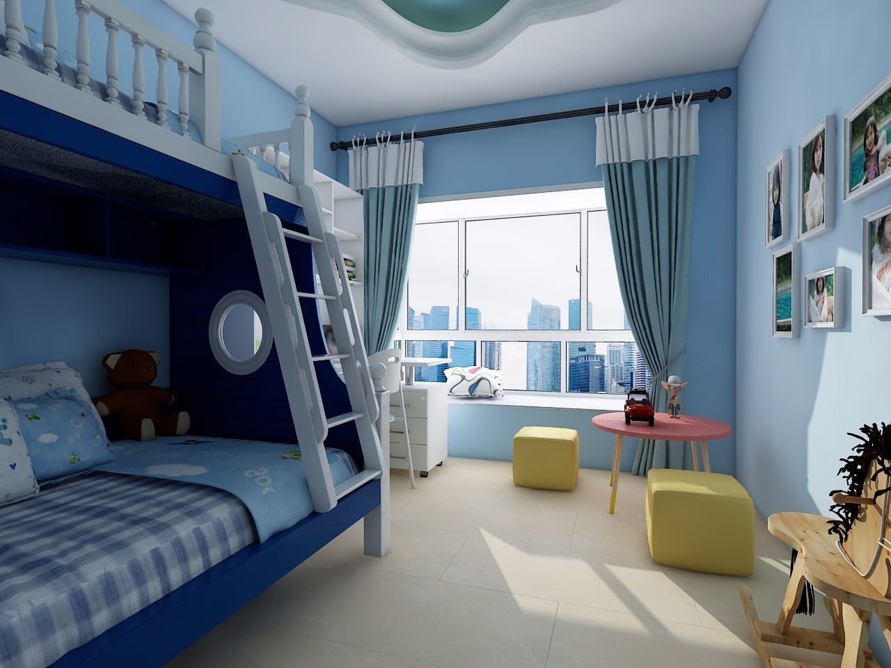 兒童房需要色彩,但也不適宜顏色太多、太過跳躍,否則會讓孩子緊張或者躁動,也易審美疲勞。
