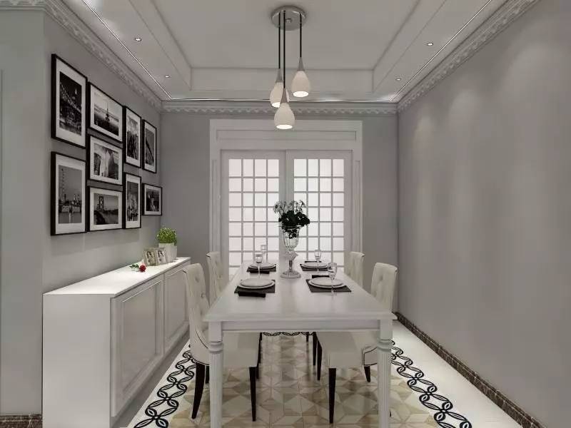 ▲顏色以黑色和白色為主,真個餐廳看起來非常有氣質;黑白框相間的照片墻讓整個家更加溫馨。