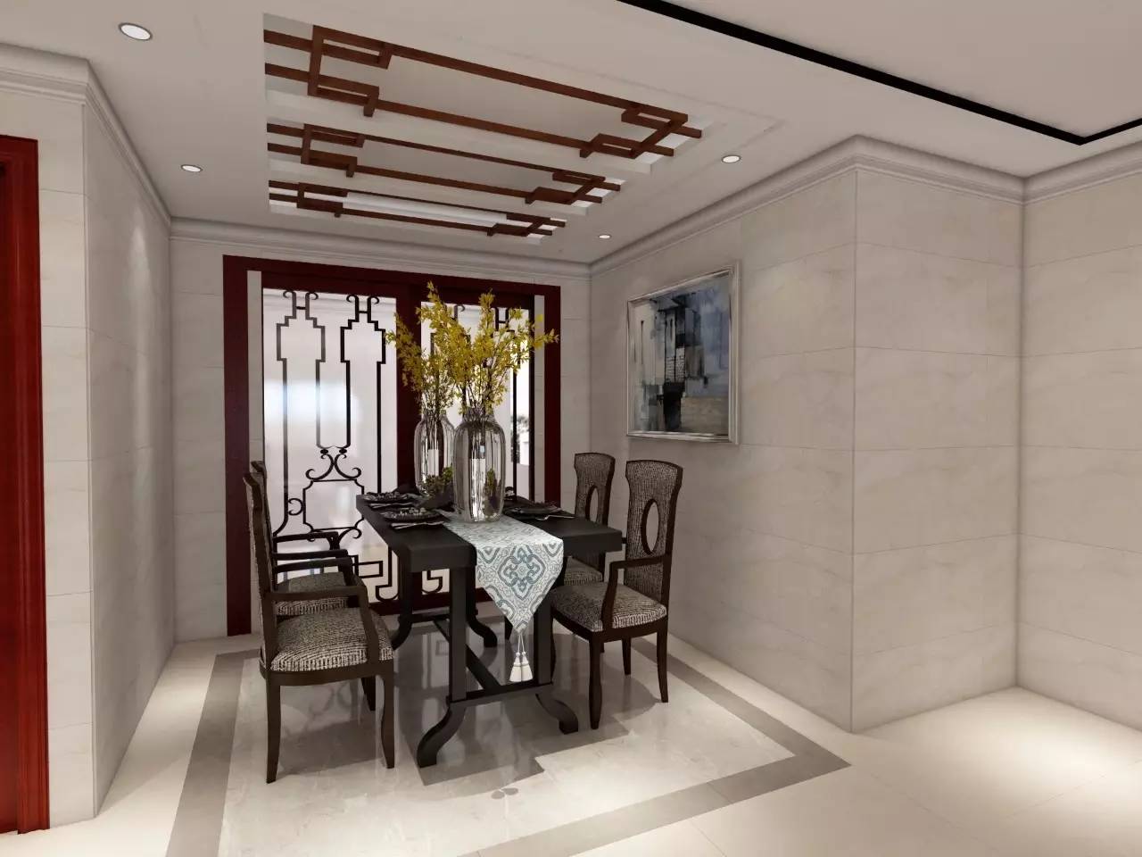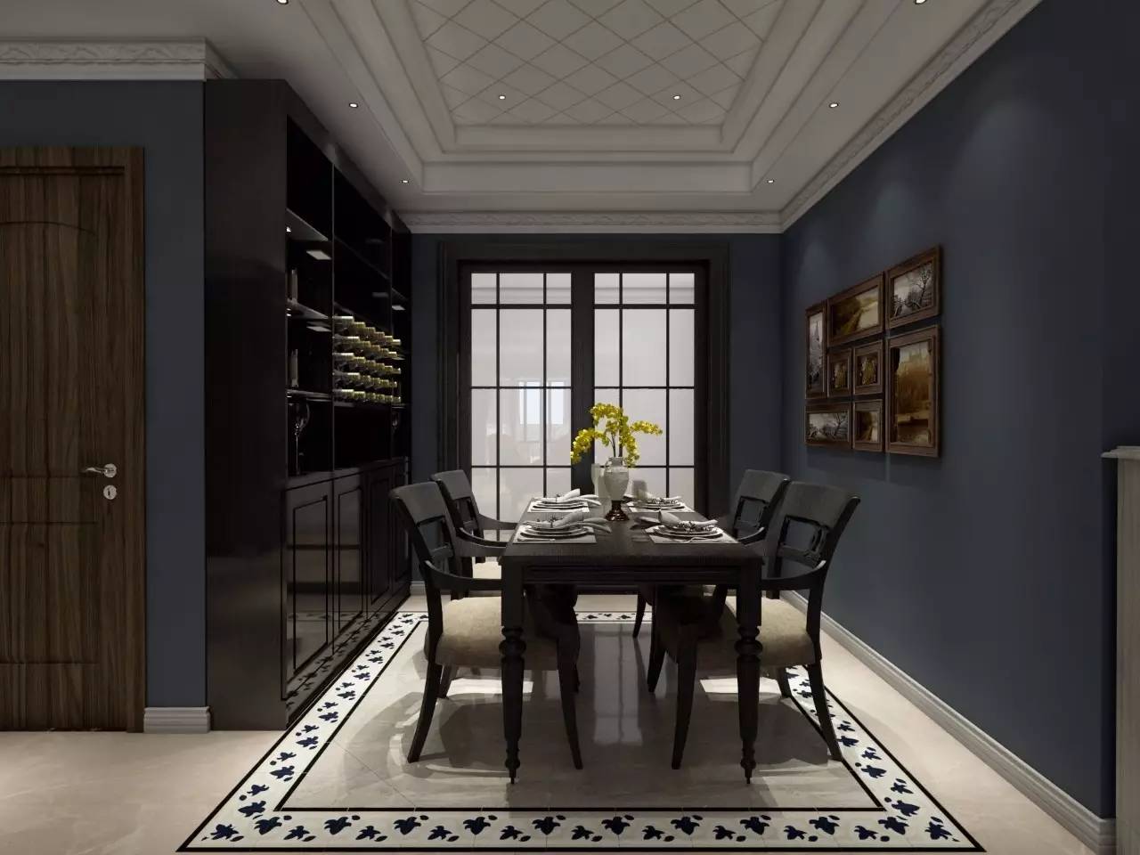 ▲飯廳深藍色的色調與中式家具相映襯,共同營造摩登雅致的就餐空間。