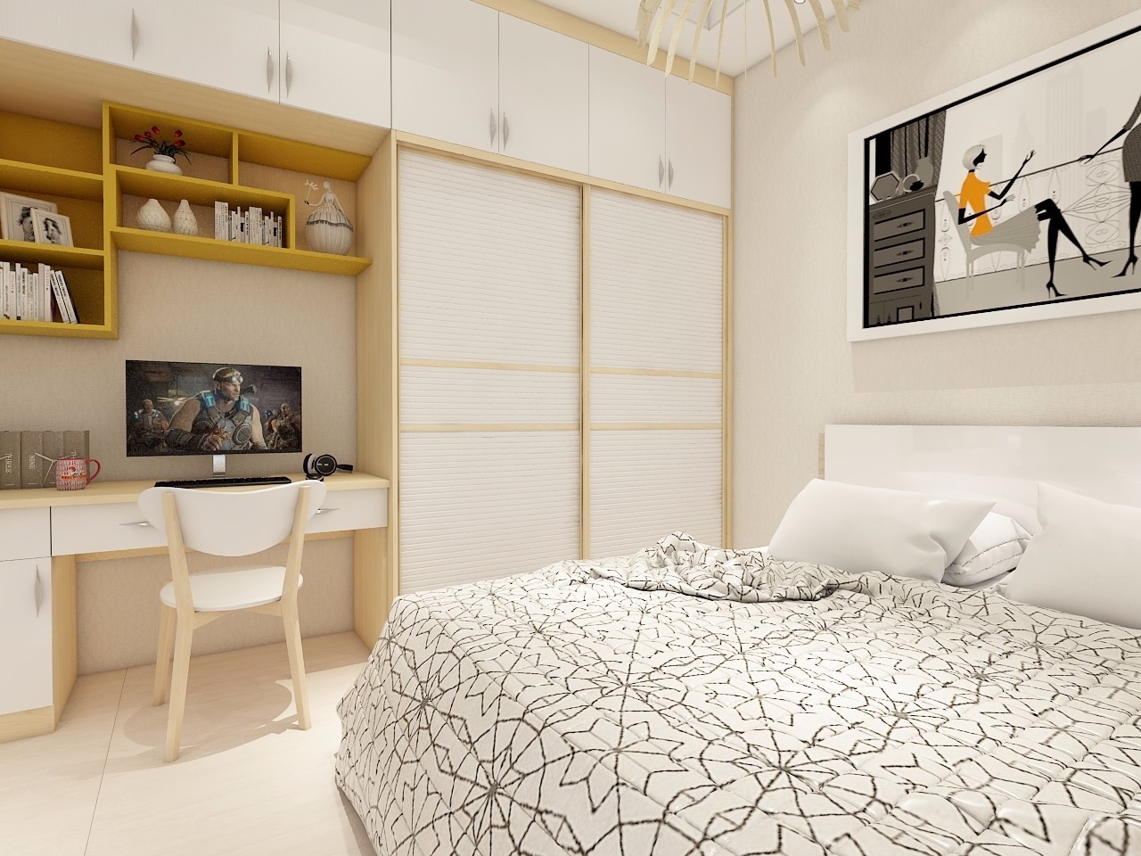 色彩明亮統一的臥室