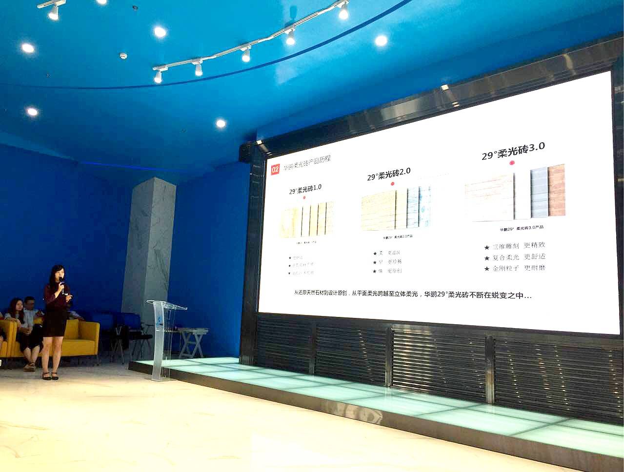 ▲華鵬陶瓷代表講解柔光磚的蛻變