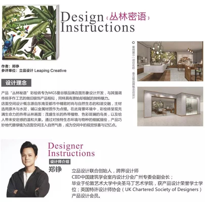 2015年華鵬陶瓷牽手廣州設計周成立國內首個瓷磚產品單品跨界設計概念獎項——“最美瓷磚設計獎”,邁出了“設計+產品“的跨界模式嘗試的第一步。加強設計與產品的聯系,以更符合時代審美標準的瓷磚產品為更對消費者打造更高質量的家居生活。