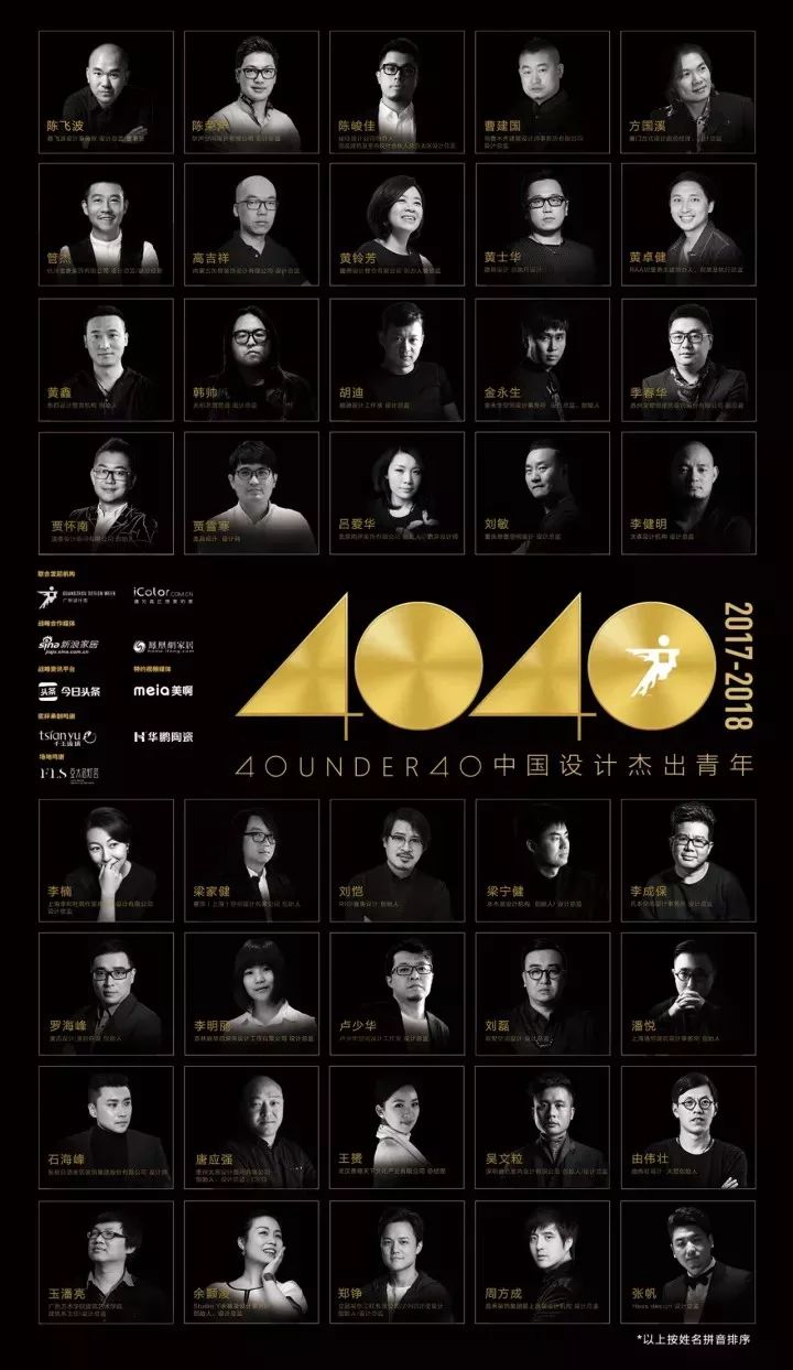 40 UNDER 40 中國設(shè)計杰出青年”年度榜單由廣州設(shè)計周在IFI認證、全球同步推廣的專業(yè)背景下于2016年與iColor高端設(shè)計服務(wù)平臺、華鵬陶瓷共同發(fā)起,旨在通過每年度發(fā)布并表彰中國境內(nèi)及港澳臺40位40歲(含)以下在室內(nèi)建筑設(shè)計領(lǐng)域具有卓越表現(xiàn)和專業(yè)成就的青年設(shè)計師,推動中國設(shè)計中堅力量合力成長,彰顯中國設(shè)計精彩紛呈的征途篇章。