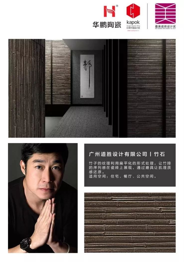 設(shè)計圈內(nèi)的年度盛世 2017紅棉獎概念設(shè)計獎之“最美瓷磚設(shè)計獎” 評選活動從1月啟動至10月截止報名,共收到來自全國各地專業(yè)設(shè)計師個人或機構(gòu)的參評瓷磚產(chǎn)品設(shè)計概念方案105套,其中有效參評方案93套,最終4套來自室內(nèi)設(shè)計師/機構(gòu)“跨界”設(shè)計的瓷磚產(chǎn)品設(shè)計概念方案成功獲選。來自設(shè)計師蔣立的《星空》、設(shè)計師沈雨翔的《Every Step Counts》、廣州道勝設(shè)計有限公司的《竹石》、廣州普利策裝飾設(shè)計有限公司的《冰·熔》共4套瓷磚產(chǎn)品設(shè)計概念方案憑借著新穎的理念、獨具一品的設(shè)計最終脫穎而出,摘得桂冠。