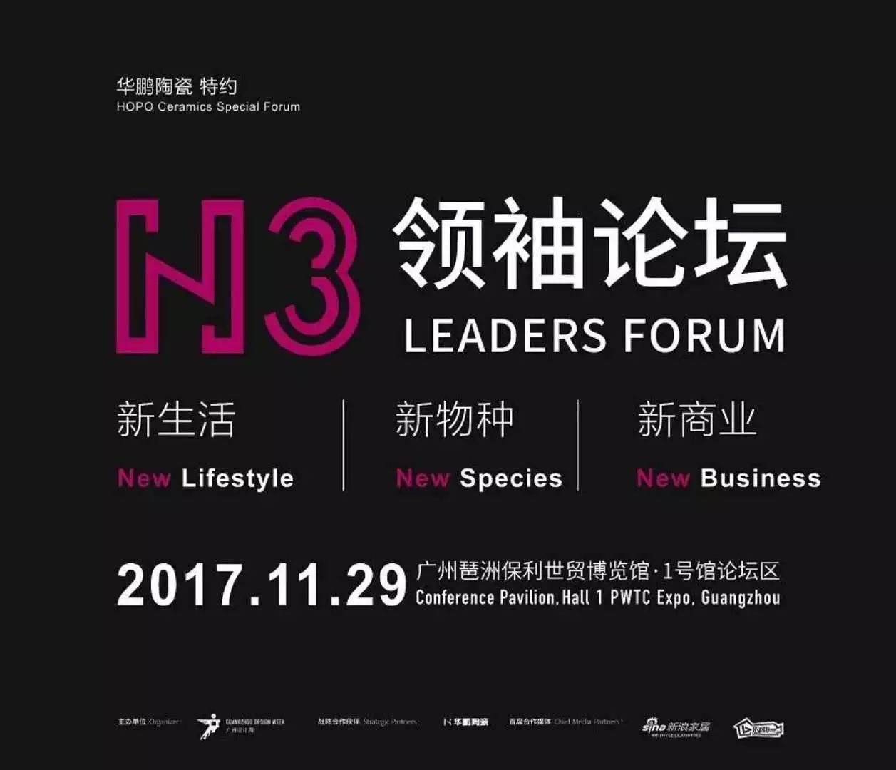 N3即新生活、新物種、新商業(yè),N3領(lǐng)袖論壇希冀聚合以設(shè)計驅(qū)動的“新生活、新物種、新商業(yè)”領(lǐng)袖人物,圍繞這一話題進行多角度闡釋,分享各領(lǐng)域內(nèi)設(shè)計驅(qū)動產(chǎn)業(yè)升級的態(tài)勢,拓展討論設(shè)計產(chǎn)業(yè)領(lǐng)域的交流,探索新的意義如何覆蓋原有的生活方式,并迭代定義新的時代。本屆2017年N3領(lǐng)袖論壇邀請國內(nèi)外知名設(shè)計師相聚2017廣州設(shè)計周,探討新時代設(shè)計師群體的發(fā)展契機,共商“新生活 新物種 新商業(yè)”大環(huán)境下設(shè)計行業(yè)面臨的機遇、挑戰(zhàn)、痛點。