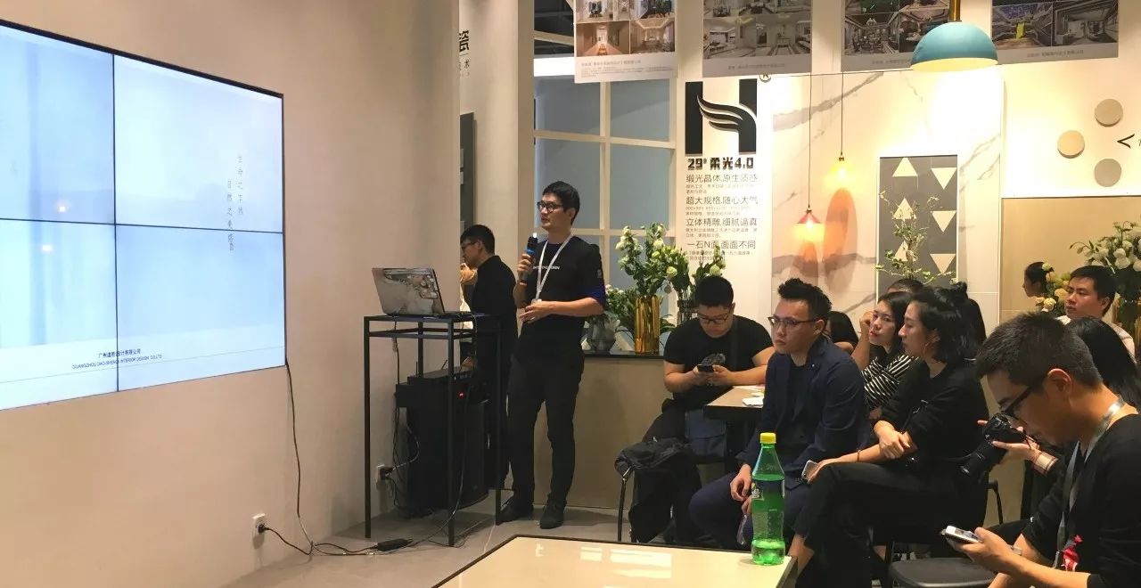 2017年28日廣州設計周華鵬展位上,最美瓷磚設計獎獲獎作品主創設計師及團隊親臨現場,并為現場上百名設計師、行業精英和媒體朋友帶來精彩分享。