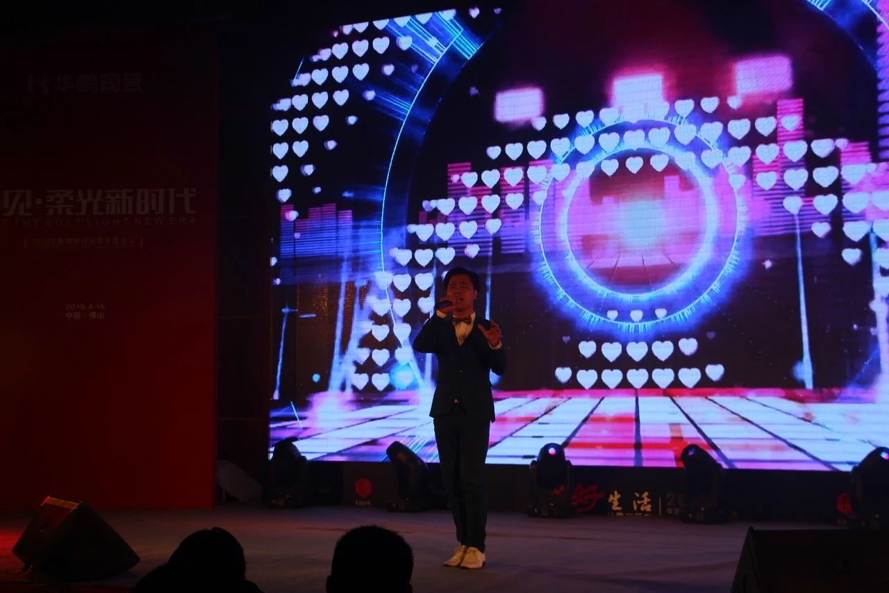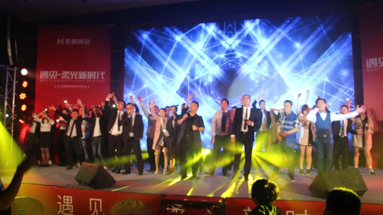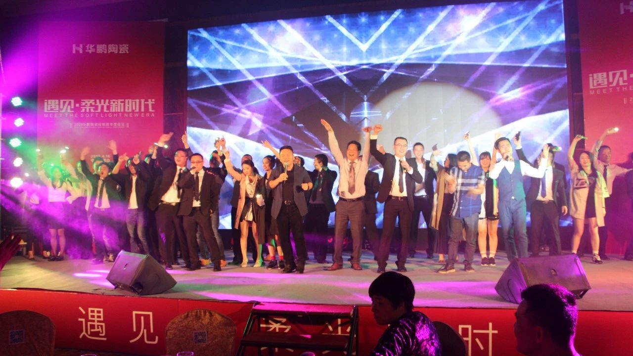 全場熱情高漲,被現(xiàn)場熱情所感染,鷹牌集團(tuán)副總裁陳賢偉、華鵬陶瓷總經(jīng)理姚松榕、華鵬陶瓷副總經(jīng)理羅樹挺以及一眾華鵬人也登上了舞臺(tái),一同高歌《飛得更高》和《怒放的生命》 ,祝愿華鵬陶瓷越做越好!