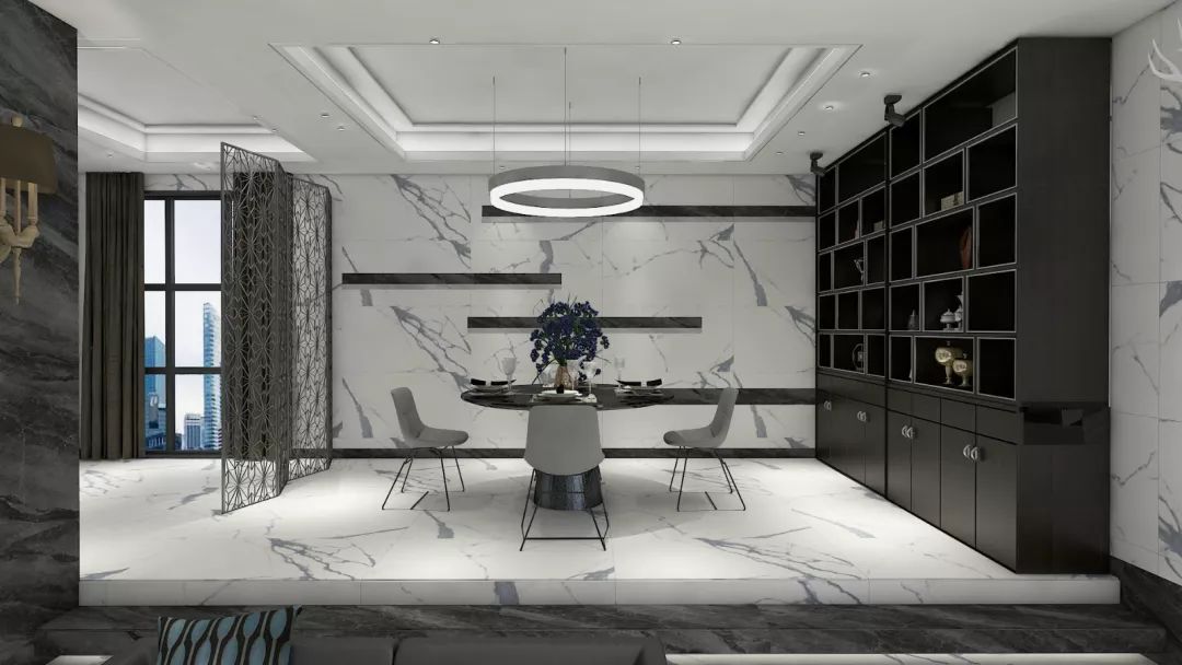 大規(guī)格瓷磚整體連貫,延展感強(qiáng),在視覺上全方位拉伸空間,更顯開闊,從而突破傳統(tǒng)小規(guī)格的審美疲勞,給人簡(jiǎn)單的大氣感,深受消費(fèi)者喜愛。