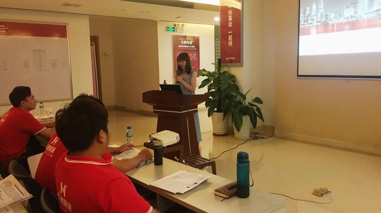 培訓(xùn)第一天就干貨滿滿,從開營組隊團(tuán)建到華鵬企業(yè)文化剖析,從華鵬產(chǎn)品架構(gòu)到門店接待技巧提升,從陶瓷生產(chǎn)工藝再到如何賣好29°柔光磚…講師們風(fēng)趣幽默的授課方式營造了輕松愉悅的學(xué)習(xí)環(huán)境,學(xué)員們在集訓(xùn)中收獲滿滿!