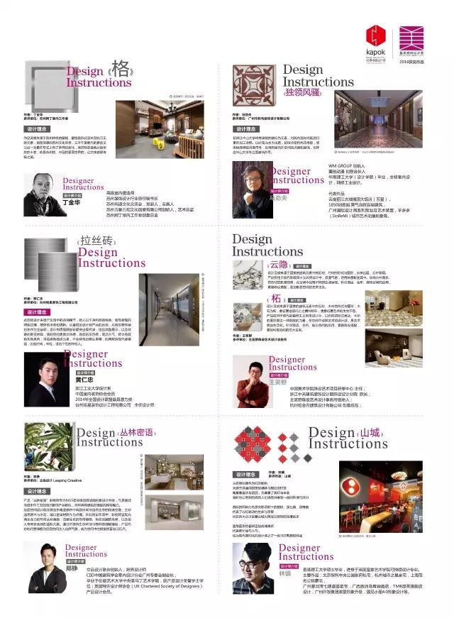 “設(shè)計創(chuàng)造價值精英人物” 評選由廣州設(shè)計周攜手華鵬陶瓷于2016年聯(lián)合發(fā)起,旨在向社會注入新設(shè)計觀、新價值觀、新文化觀,提升民生生活價值、增加商業(yè)品牌價值和貢獻城市發(fā)展價值。該評選表彰以觀念創(chuàng)新帶動產(chǎn)業(yè)升級發(fā)展,為國家創(chuàng)意產(chǎn)業(yè)塑造創(chuàng)新發(fā)展模式,為中國設(shè)計跨越式發(fā)展樹立“樣板工程” 的精英設(shè)計師。