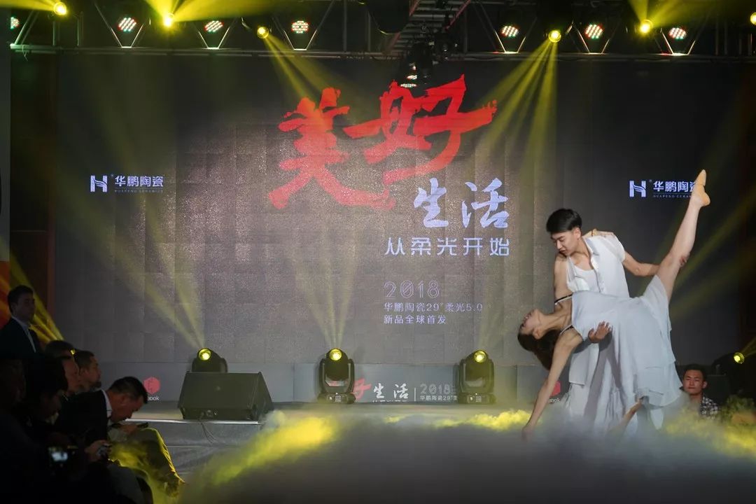 2018年4月15日,華鵬陶瓷以舞蹈藝術的表現方式,重磅發布了29°柔光5.0系列新品,傾情詮釋了“美好生活從華鵬開始”。