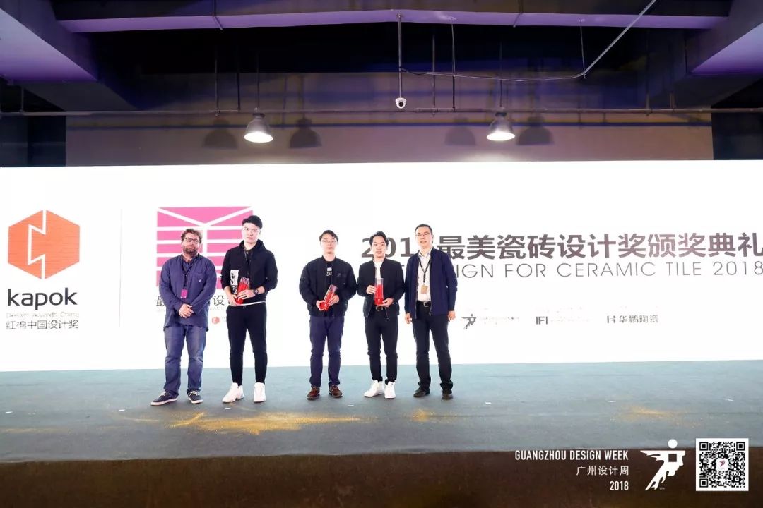 27日下午, “2018年度紅棉中國設計獎”頒獎典禮盛大開幕,華鵬陶瓷總經理姚松榕先生上臺為“紅棉·最美瓷磚設計獎”“2018設計創造價值精英人物·全國十強”頒獎。