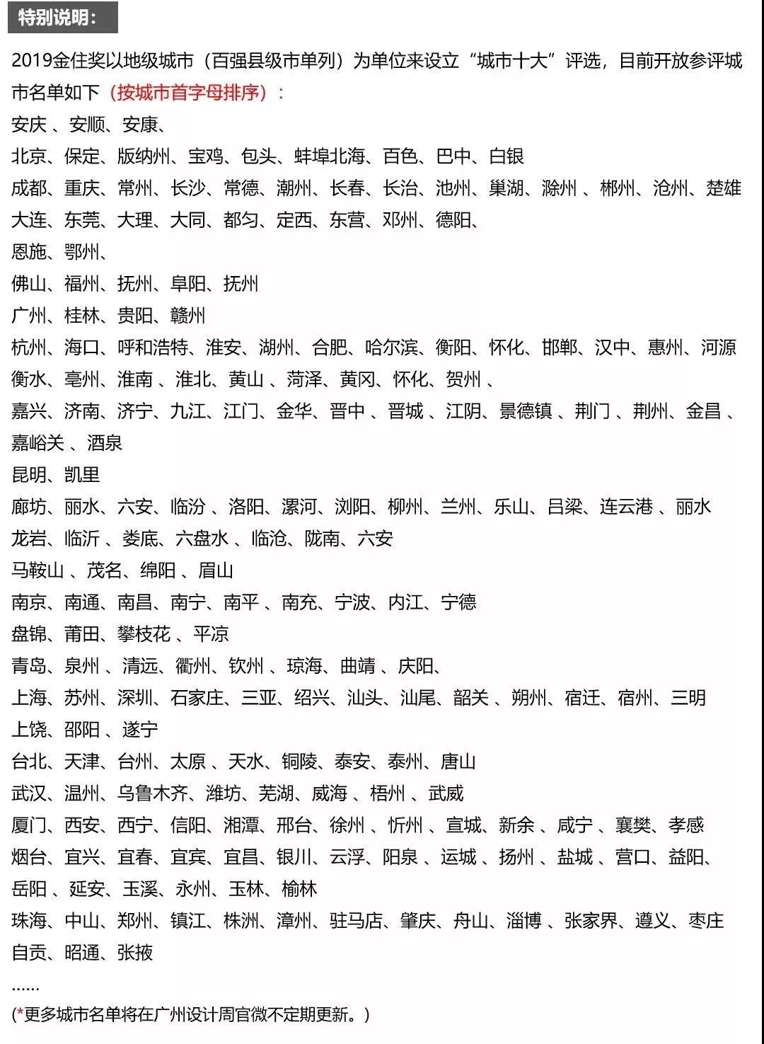 金住獎-2019XX(城市)十大居住空間設計師 ≤10名(簡稱:城市十大)
