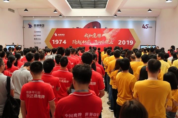 8:30分,鷹牌45周年司慶活動正式開始!鷹牌人齊聚總部,唱響《鷹牌人之歌》。“鷹牌人征途上,鷹牌夢更輝煌”,唱出鷹牌人的激情和夢想。