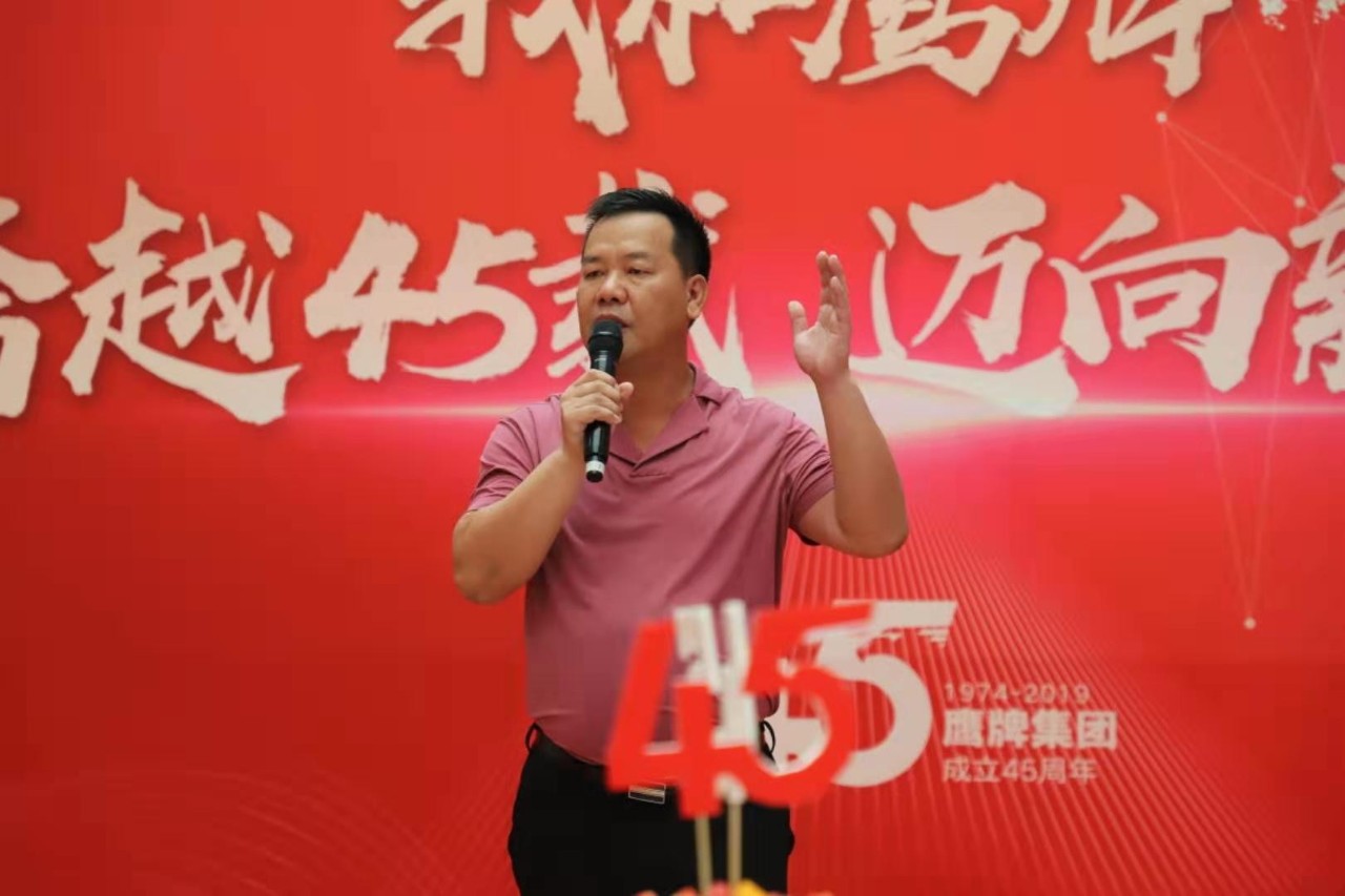 集團總裁林偉先生在慶典上致辭,他表示,鷹牌走過45年十分不容易,很多人為鷹牌奉獻了青春,很多父子兩代人追隨鷹牌,許多人給予鷹牌幫助,讓他成長發展。為此,他代表鷹牌集團向全球合作伙伴、鷹牌員工和社會各界表達了感謝。未來,希望鷹牌人能以更多的責任和擔當,為百年鷹牌的目標,為鷹牌“世界品牌、行業標桿”的愿景、為鷹牌“傳承建陶文明,讓生活更美好”的使命而努力奮斗。