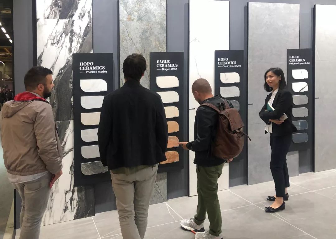 華鵬陶瓷吸引了眾多國際客商關注,米蘭3家知名設計機構更是到訪華鵬展位,一起探討2019年博洛尼亞展展會趨勢。華鵬柔光產品引發設計師關于柔光產品趨勢大討論,預測高端柔光產品會成為未來瓷磚的趨勢與風向標。