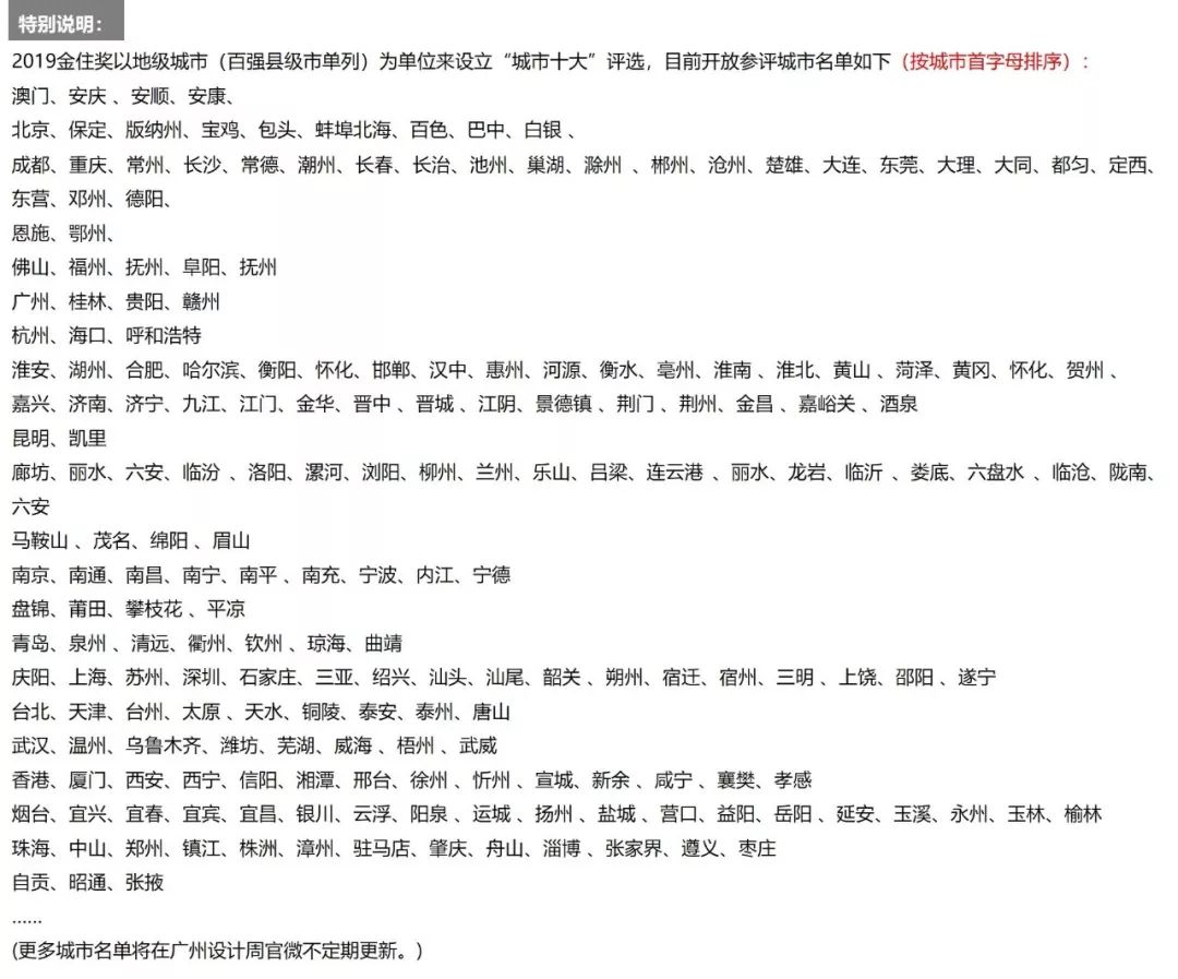 金住獎-2019XX(城市)十大居住空間設計師 ≤10名(簡稱:城市十大)
