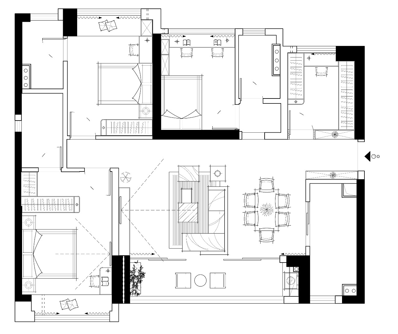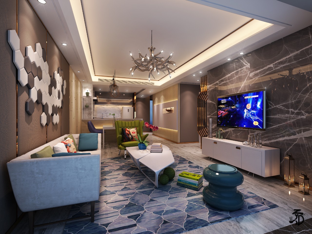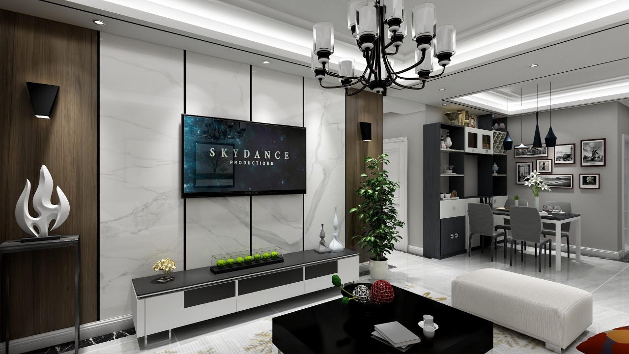 將藝術元素融入現代風格,采用高級黑的色彩,簡潔的墻面線條做輪廓勾勒。