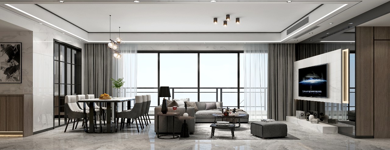 搭配唯美的燈光,增加了空間通透感,在以高級灰環境為肌底的前提下,用自然元素勾勒出了溫暖如春的住宅空間。