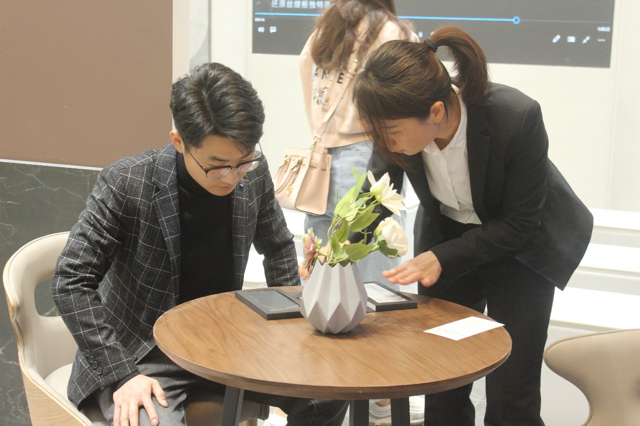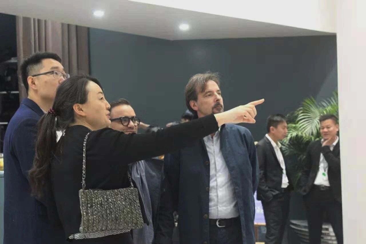 更懂設計師的展館,也吸引了更多設計師的駐足,各大媒體爭相報道,來自意大利的設計師也前來參觀、交流,對華鵬在設計方面的探索進行深入交流。