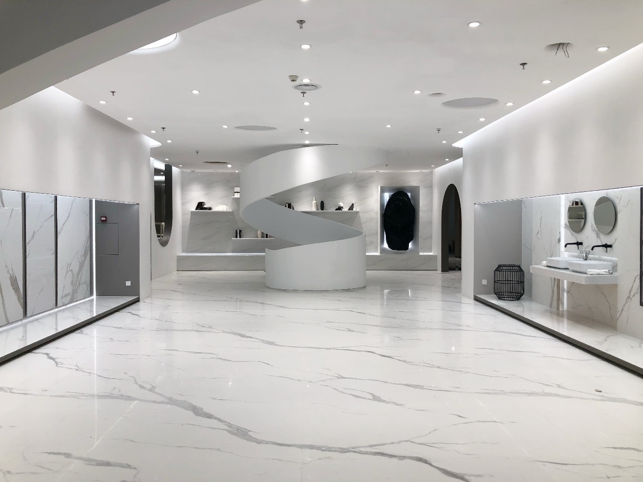 4000㎡新總部展廳以“不是設計展廳,而是讓展廳有設計感”為設計理念,打破行業傳統展廳布局方式,摒棄樣板間展示,為產品尋找自身的設計屬性,重新定義陶瓷產品展示。