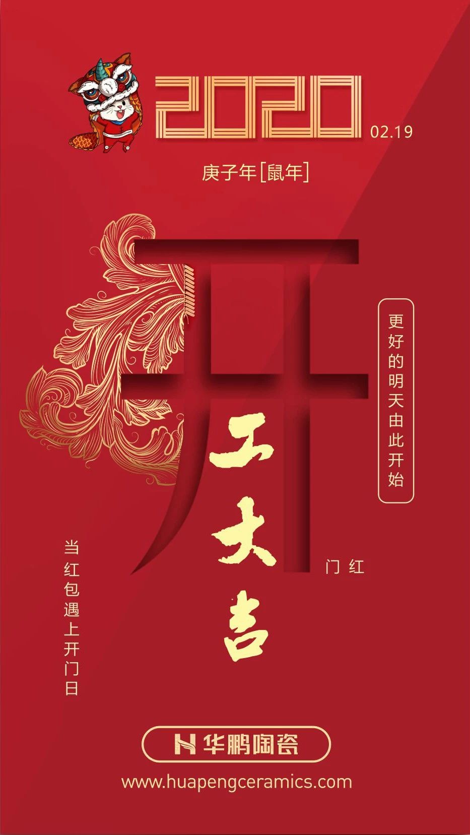2020年2月19日,華鵬陶瓷重啟2020,開啟新的營銷年,以嶄新的面貌迎來開工的第一天。