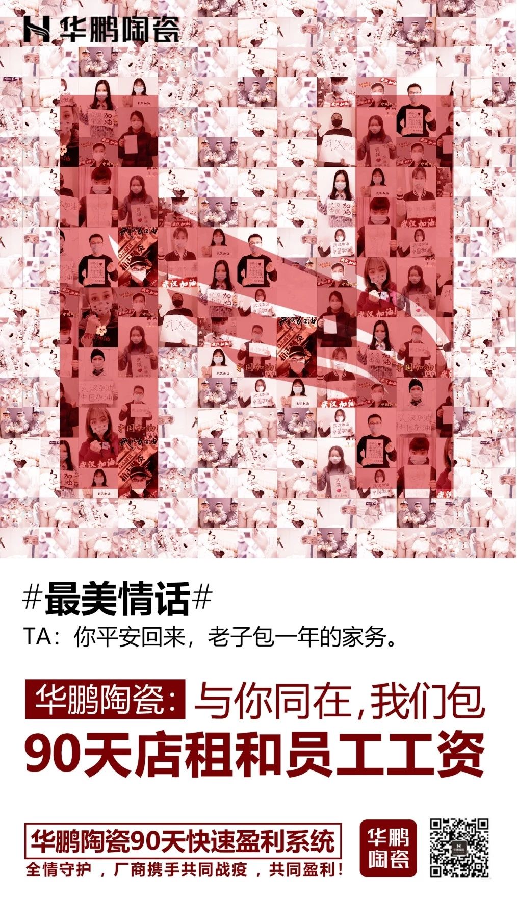 面對疫情,華鵬陶瓷積極響應, 努力探索疫情下全新的營銷模式和服務方式。生產營銷主動作為,全面升級線上渠道,開啟網上營銷和線上培訓通道,并從產品、渠道、資金和服務等方面全方位支持,廠商攜手共同戰疫,共同盈利!
