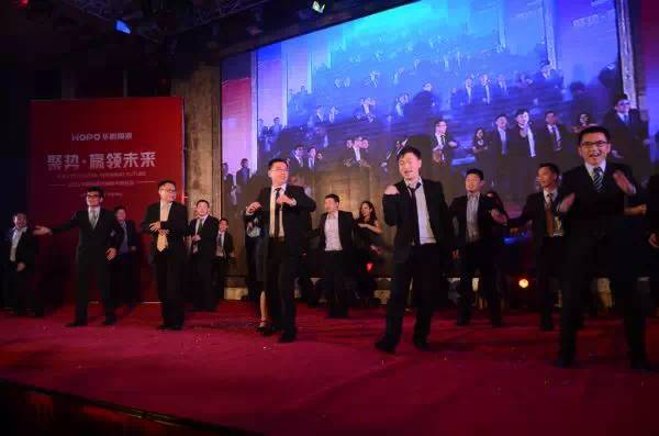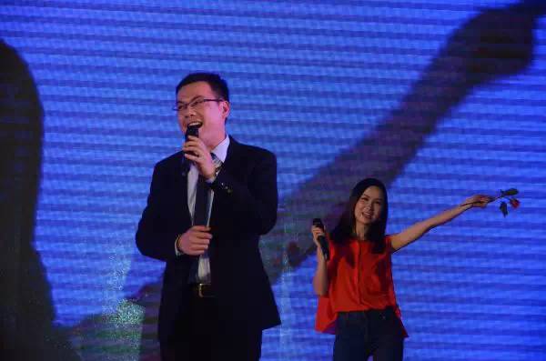 由華鵬總部美女表演的歌曲串燒《海闊天空》、《愛拼才會贏》仿佛讓大家來到了中國好聲音現場,奔放而熱烈,臺下的觀眾忍不住跟著一起合唱,姚總也情不自禁上臺進行互動,把晚宴表演推到了一個高潮,歌曲寓意著華鵬人敢為天下行、愛拼才會贏的精神。