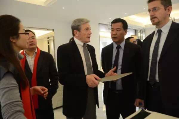 意大利頂級設計師和鷹牌集團總裁林偉在一起。