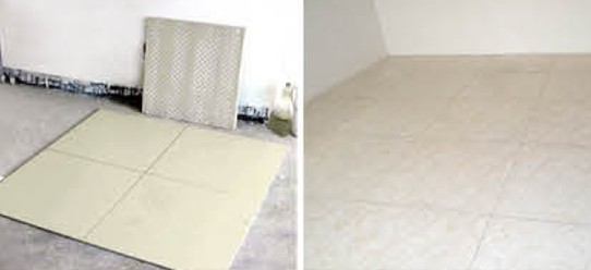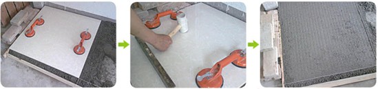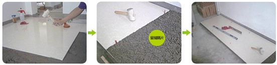 7、找平:將產(chǎn)品先平鋪在素砂漿層上,并用橡皮錘四邊敲平、壓實,然后取下產(chǎn)品,將得到厚實、平整的地面層,若發(fā)現(xiàn)有不平整的地方應(yīng)立即補砂漿填實,保證底面層整體平整。