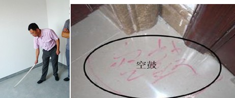 檢驗方法:用小錘輕擊檢查(注:凡單塊磚邊角有局部空鼓,且每自然間(標(biāo)準(zhǔn)間)布超過總數(shù)的5%可不計)。