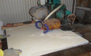 5、對于邊長800mm或者以上規(guī)格,異形加工之前,務必保證板下邊均勻鋪墊牢實、平穩(wěn),一定避免有一角實際懸空(那怕只有大約1mm)的情況。