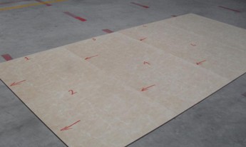 凡是深加工中在微晶石背面形成了鋸切槽溝甚至是槽溝交叉的部位,都可能在鋪貼之后使用中產生裂痕,故需要進行如下特殊處理:直接在上述微晶石的背面的凹陷槽內添實、添滿石材粘結膠(俗稱大力膠、大理石膠),達到補強的效果。同時還要在已填實的溝槽附近2~3厘米的地方涂覆一薄層石材粘結膠,以達到隔離效果。待粘結膠基本凝固即可用于正常鋪貼。