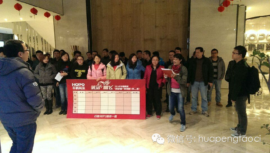 2014年2月18日,華鵬陶瓷HOPO精英們長驅直進,鶴山正能量拓展訓練基地,開展為期3日的“策馬鵬飛”——第二屆“踐夢者”特訓營暨2013年度總結2014年度可規劃報告會。