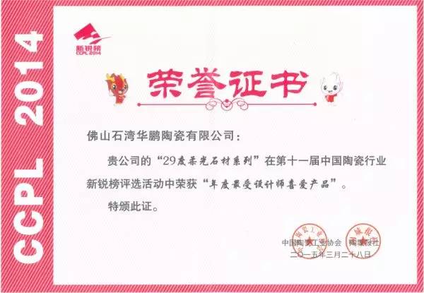 新銳產品的評選“百強企業”的重要指標。尤其是華鵬的29度柔光石材和一次燒微晶玉石明星產品,經得起組委會專業評審團的考驗,成為百強中的標桿。