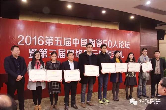 2016年3月15日下午,以“泛品牌時代的誘惑與陷阱”為主題的第五屆中國陶瓷50人論壇暨第三屆網絡風云榜頒獎典禮在佛山舉行,此次活動由華夏陶瓷網、中國建筑衛生陶瓷年鑒主辦,華夏陶瓷網微信公眾號承辦,中國陶瓷品牌網為戰略合作伙伴。