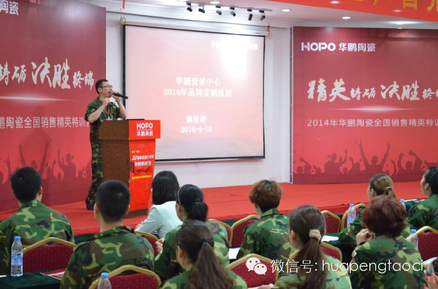 今天華鵬為精英們準備的集訓內容主要是知識講座,華鵬陶瓷總經理姚松榕先生率先為大家帶來了《2014年HOPO營銷規劃》,緊接著副總經理楊勇先生為大家解讀了《華鵬陶瓷產品體系》。現場學習氣氛十分濃烈,學員們聚精會神、踴躍提問、爭相竟答,一次次將現場氣氛掀至高潮。