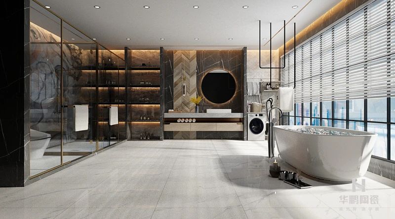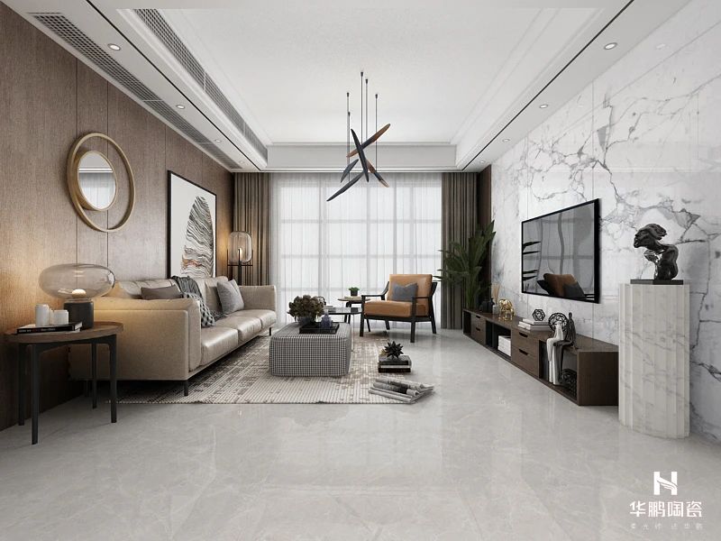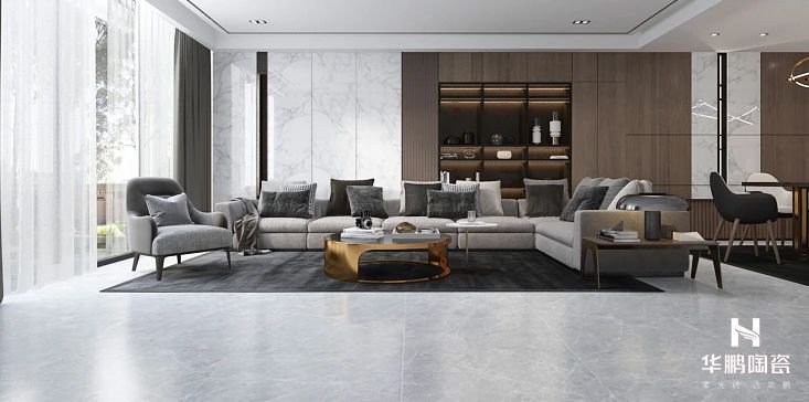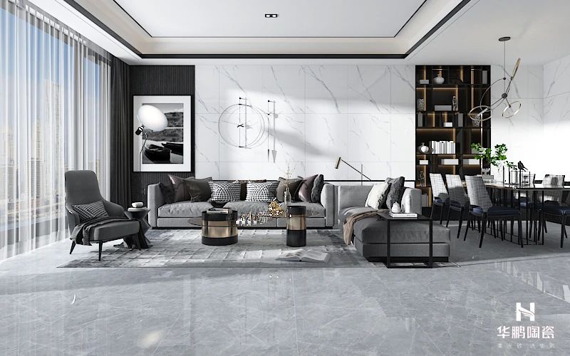 華鵬“通體大理石” 系列產(chǎn)品,萃取天然大理石的元素精華,以精密數(shù)控雙重精拋+釉面復(fù)合重疊技術(shù)完美復(fù)刻天然石材的紋理、色澤及質(zhì)感。