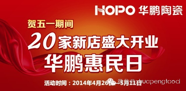 此次20家新店開(kāi)業(yè)恰逢五一小黃金周,華鵬陶瓷持續(xù)打響“百花綻放”第二炮,特結(jié)合“五一”鉅惠,20家新店與全國(guó)經(jīng)銷(xiāo)商同步舉行“華鵬惠民日”全國(guó)大型促銷(xiāo)活動(dòng),再次掀起覆蓋全國(guó)的陶瓷優(yōu)惠風(fēng)暴!活動(dòng)日期自4月26日起,到5月11日截止,數(shù)十款新品開(kāi)業(yè)大放價(jià),限量搶購(gòu),部分搶購(gòu)產(chǎn)品還可特享廠(chǎng)家鉅惠補(bǔ)貼,與此同時(shí),下單有禮、歡樂(lè)抽獎(jiǎng)等項(xiàng)目亦同步進(jìn)行。