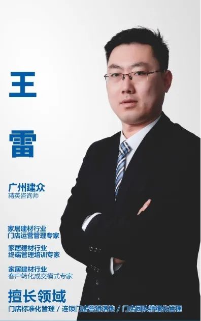 家居建材行業門店運營管理專家、終端管理培訓專家、客戶轉化成交模式專家,擅長門店標準化管理,連鎖門店營銷落地,門店團隊精細化管理。