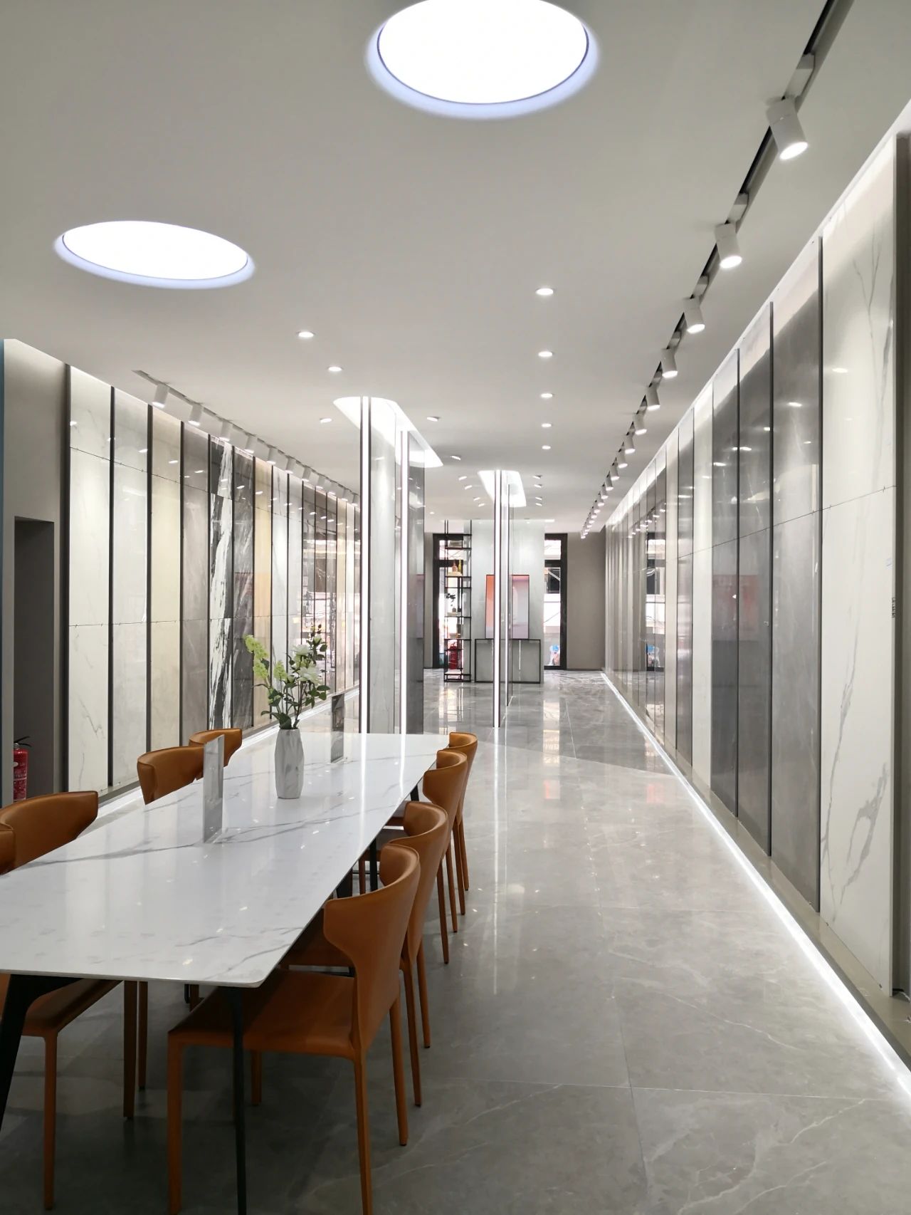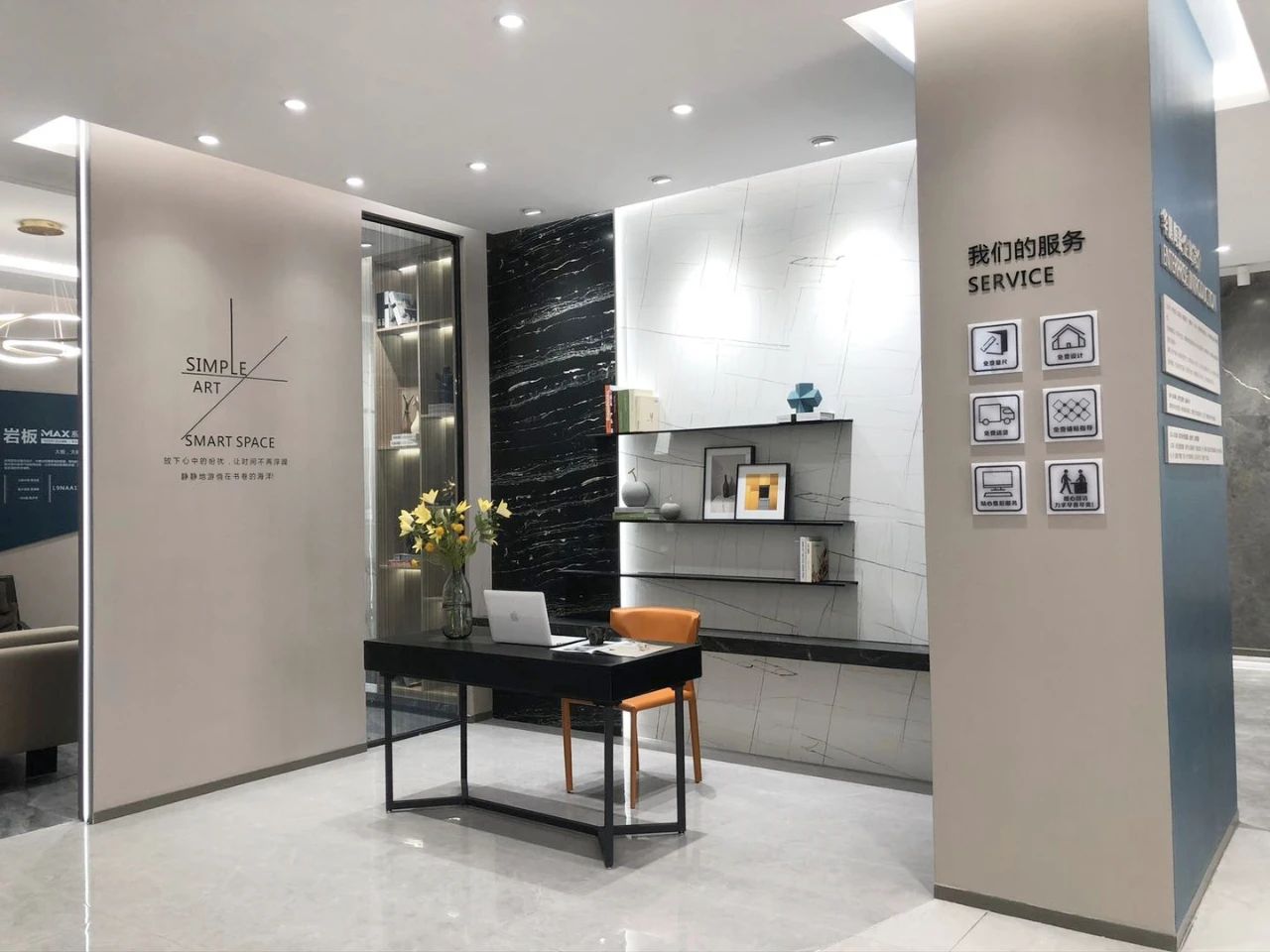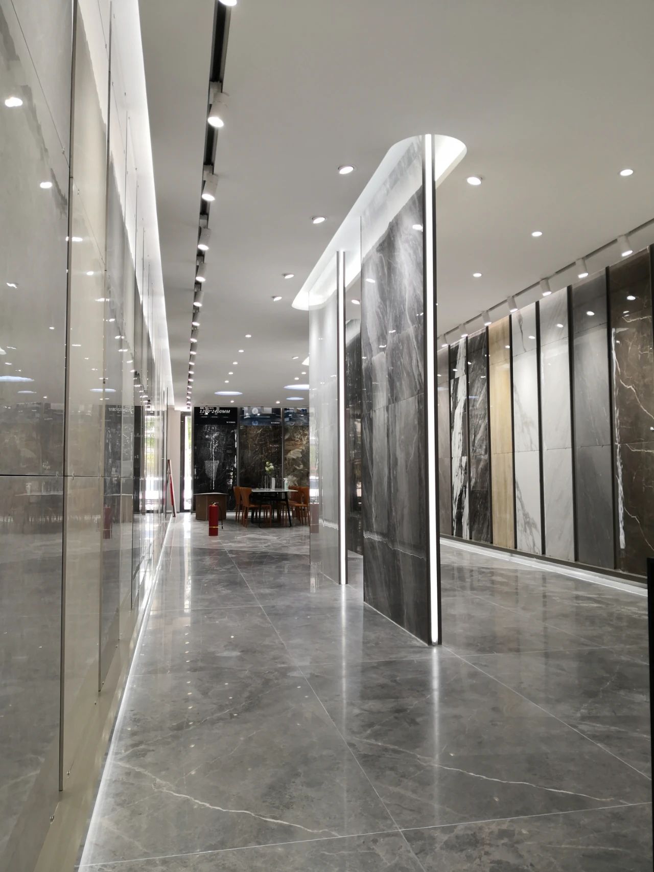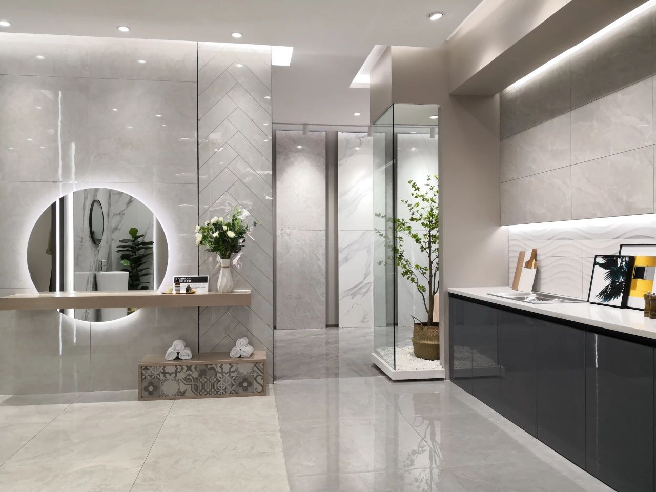 選材區(qū)直觀陣列式且有獨特韻律的展示布局,方便消費者選材和體驗品牌全方位產(chǎn)研實力。