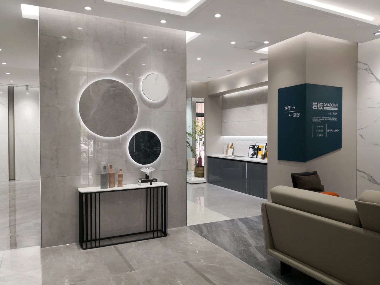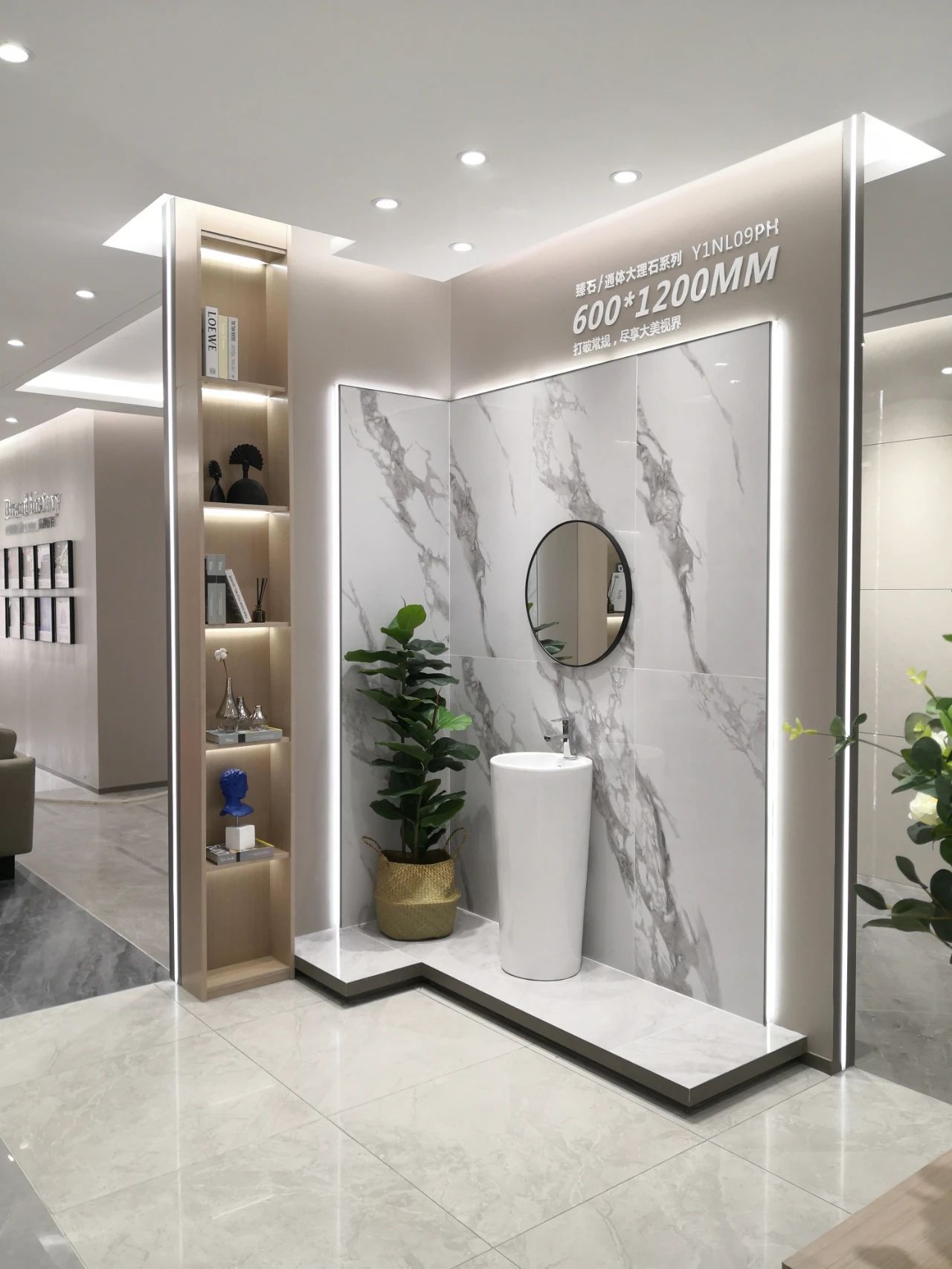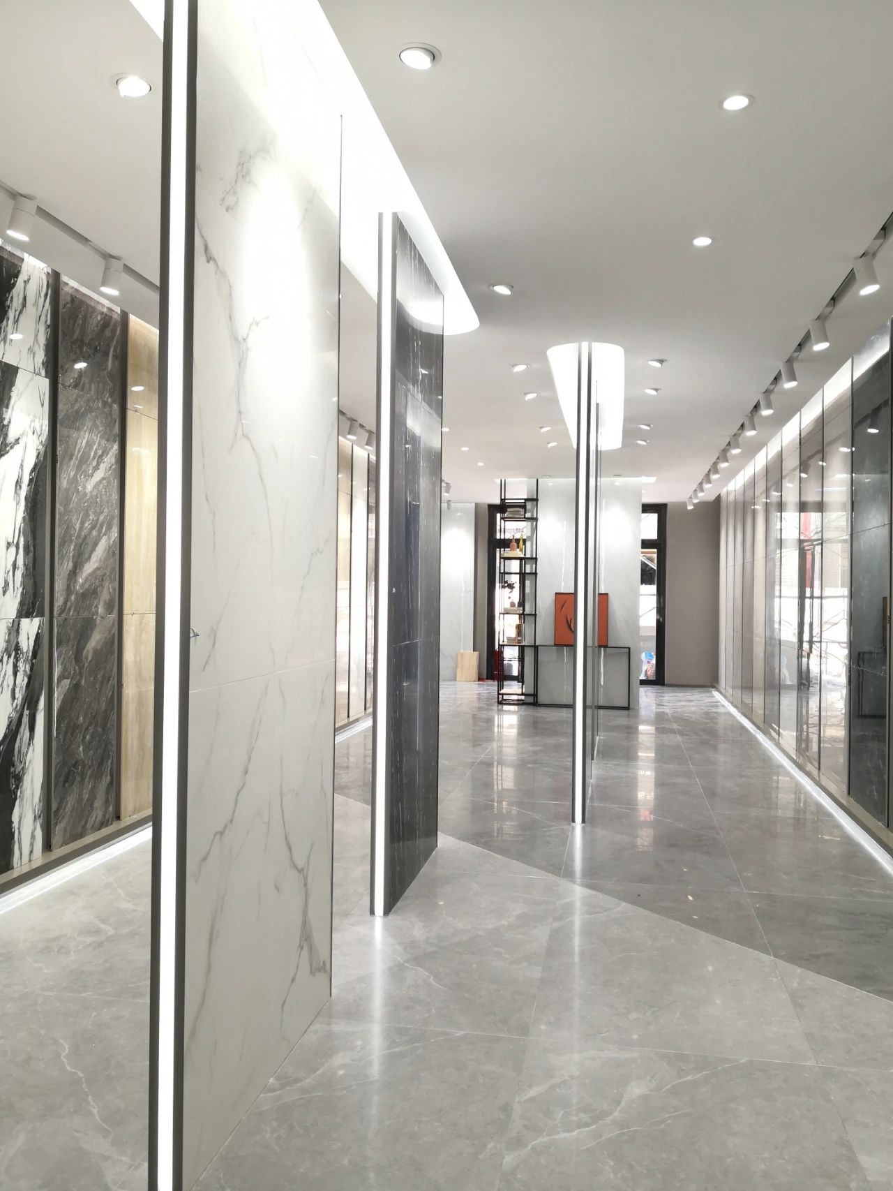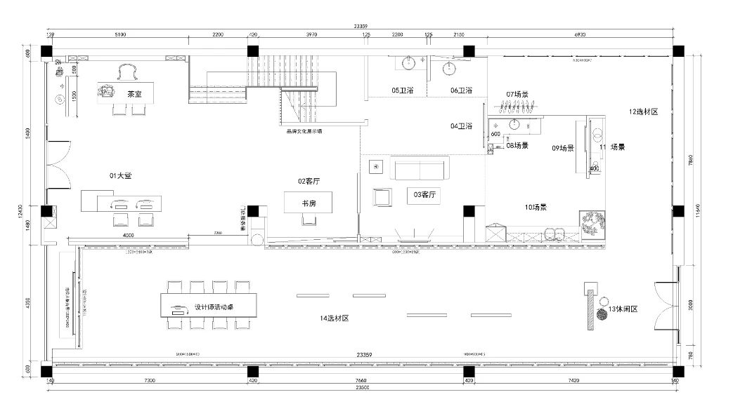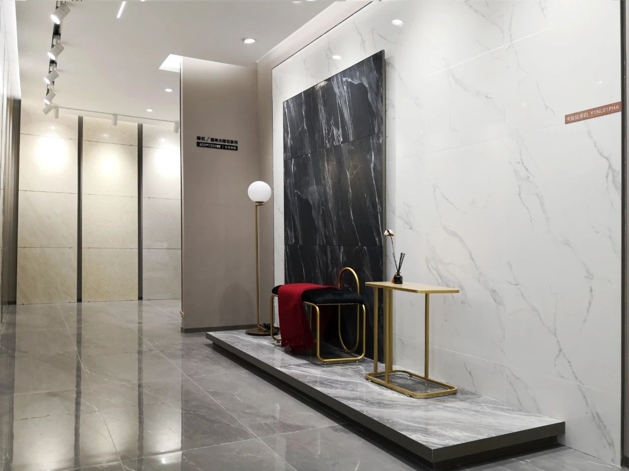選材區(qū)直觀陣列式且有獨特韻律的展示布局,方便消費者選材和體驗品牌全方位產(chǎn)研實力。