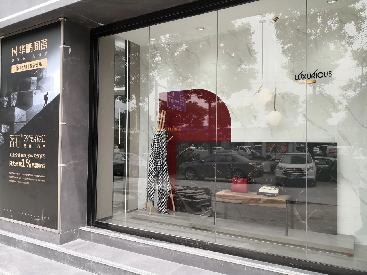 落地櫥窗,是一個個時尚精致的藝術(shù)空間,顏色鮮艷的弧形元素和華鵬產(chǎn)品,讓整個店面充滿活力。