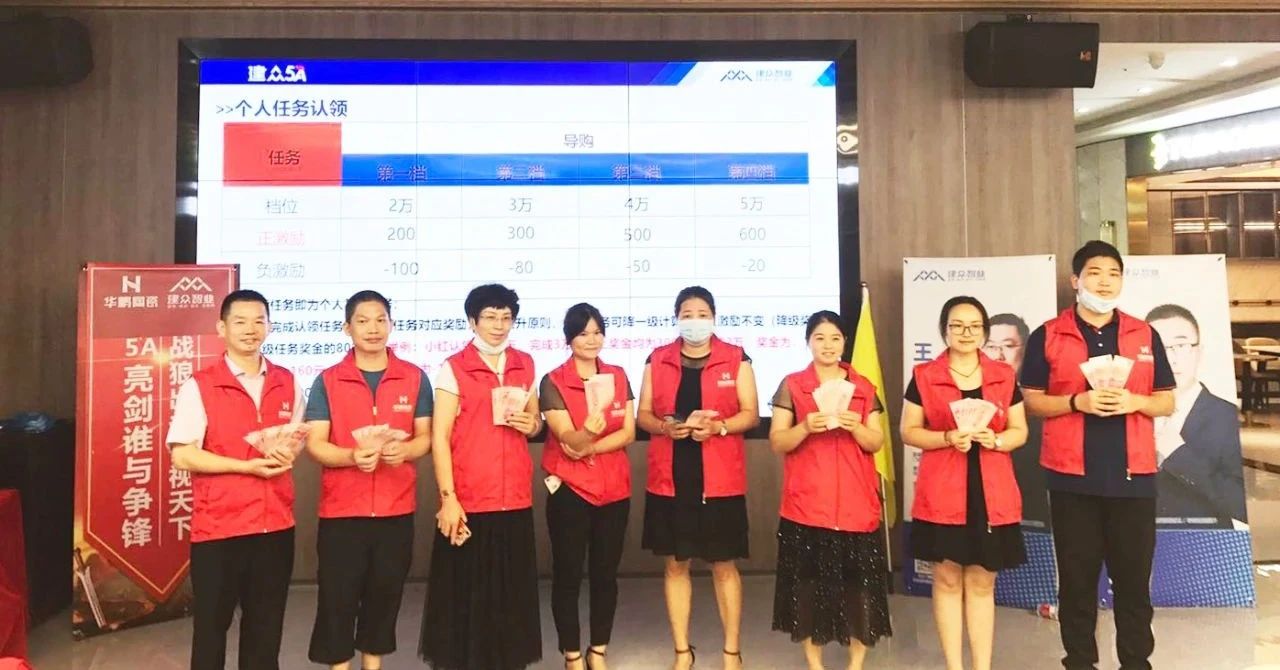 項目啟動之初,華鵬陶瓷幫扶小組和建眾老師就組建種子選手團隊,設立5A項目作戰指揮中心,隨后種子選手一對一駐點5A項目各作戰站點,到門店展開銷售PK、團隊PK,5A項目銷售PK機制隨即開啟。