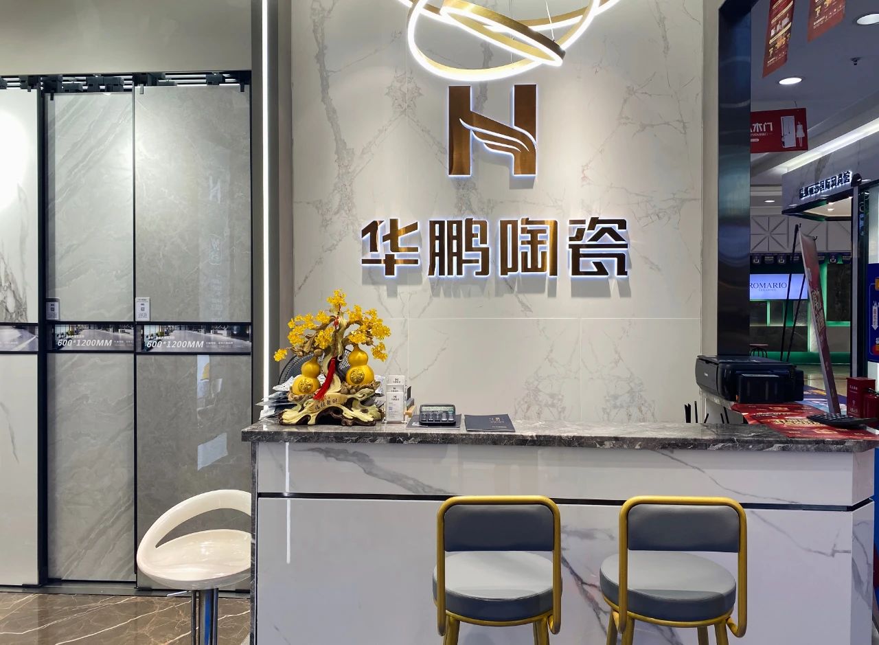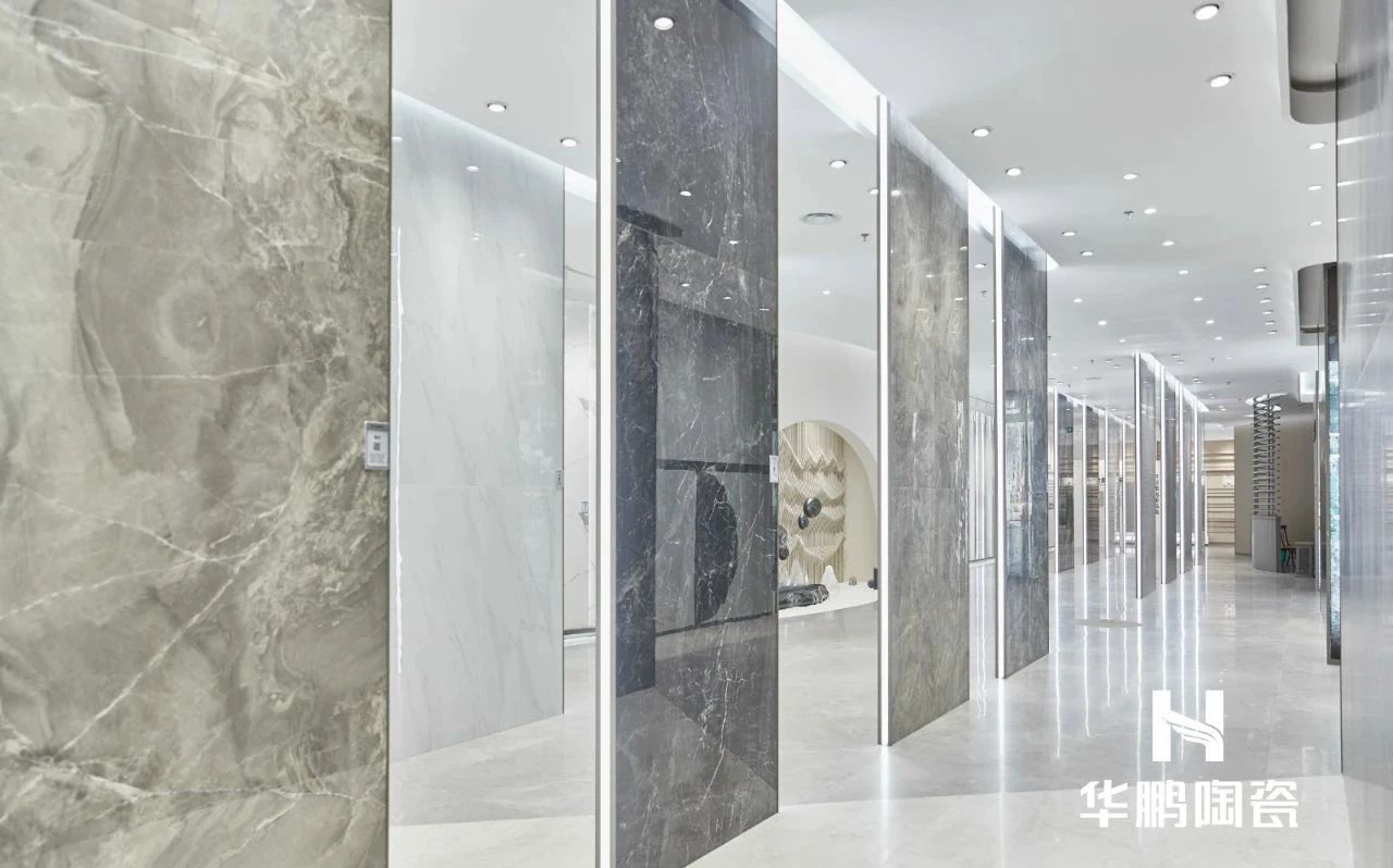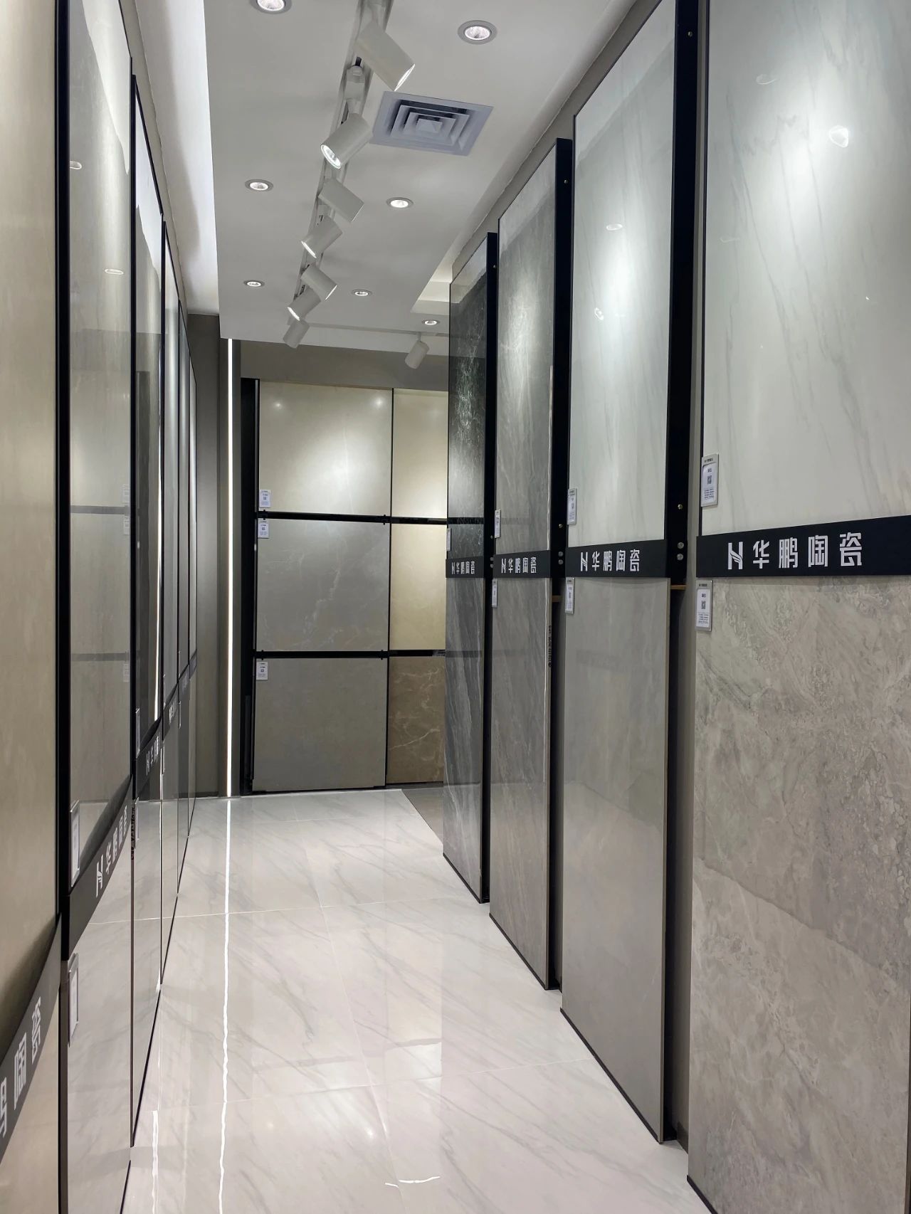 華鵬陶瓷設計組,充分利用80㎡的店面面積,做好空間布局規劃,滿足經銷商的上樣需求,實現了華鵬陶瓷全產品體系展示。