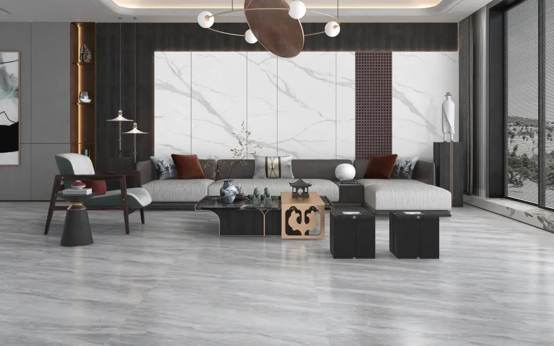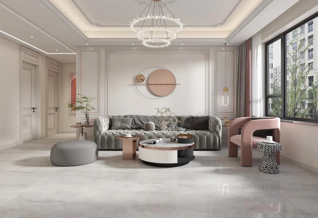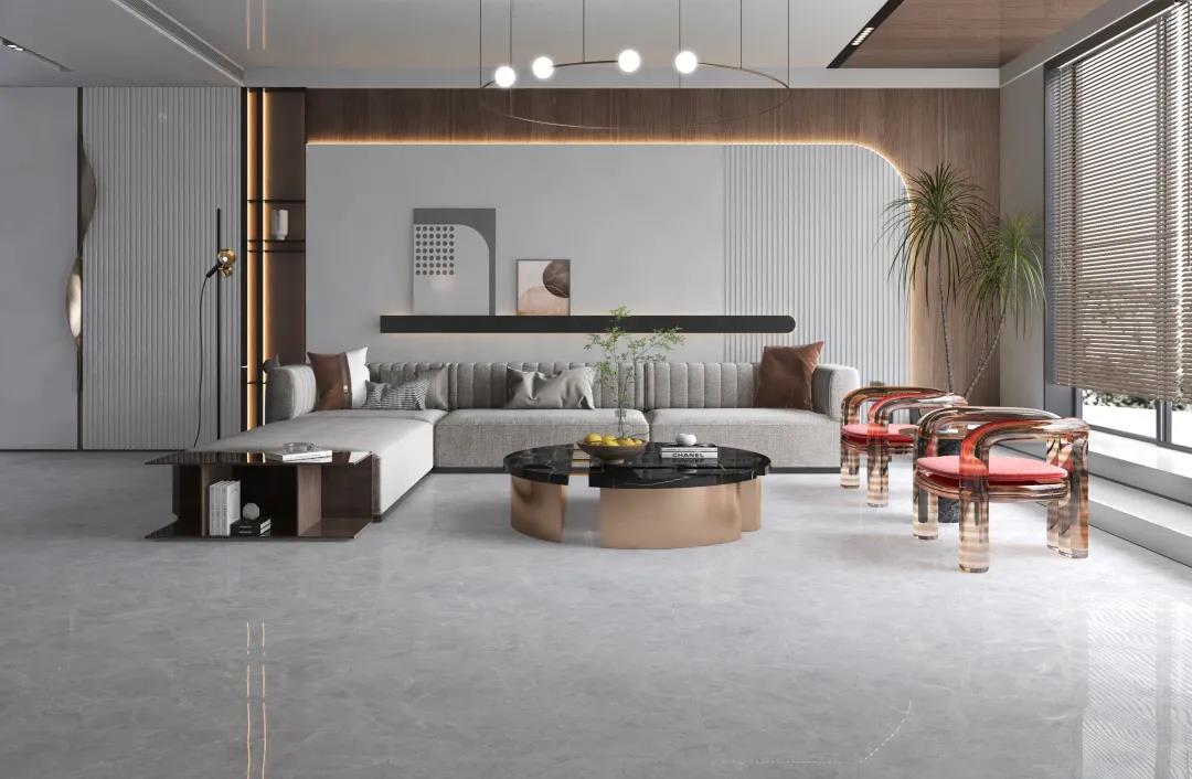 現(xiàn)代簡約風的地磚搭配選擇了簡潔素雅的夢幻灰,若隱若現(xiàn)的暗紋,宛如翻騰的云層,為簡約的家居彰顯大氣。
