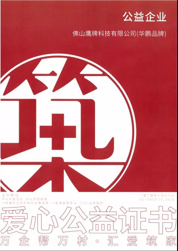 華鵬陶瓷作為愛心品牌商,為改造項(xiàng)目提供建陶產(chǎn)品,被授予“
