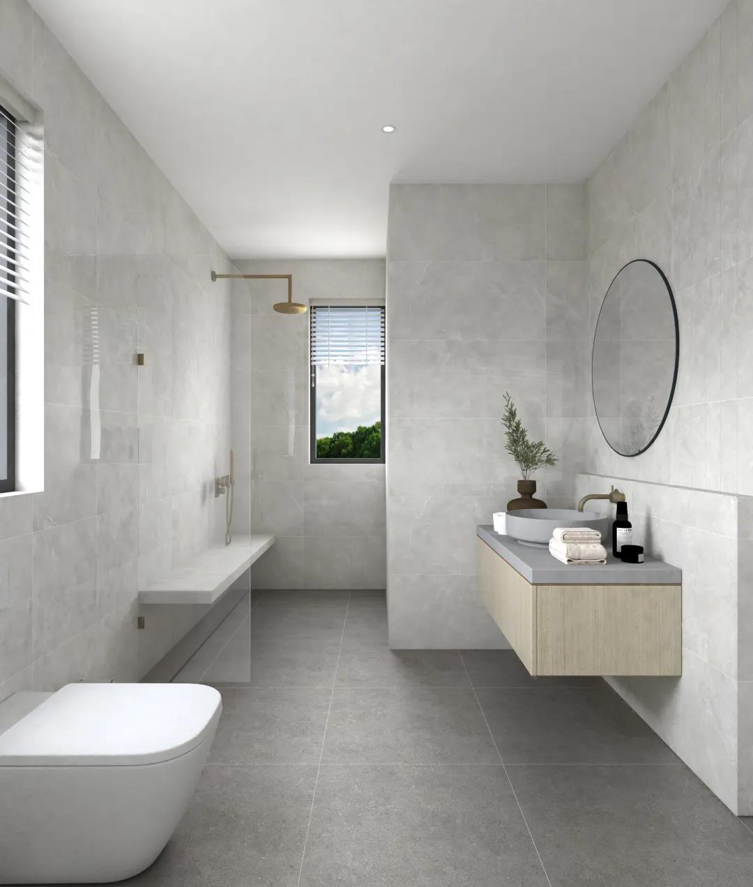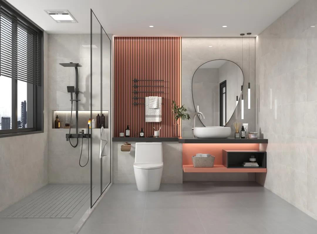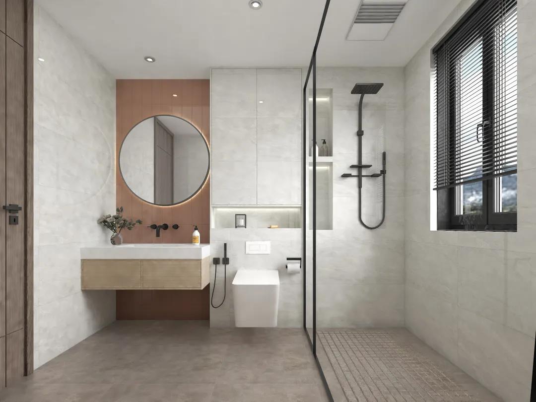 400x800mm規格無需加工卻具有大磚上墻的效果,地面采用600x600規格仿古磚進行搭配,完美的解決了傳統瓷磚吸水率高、硬度低易滲水等缺陷,防滑、防水更耐用。