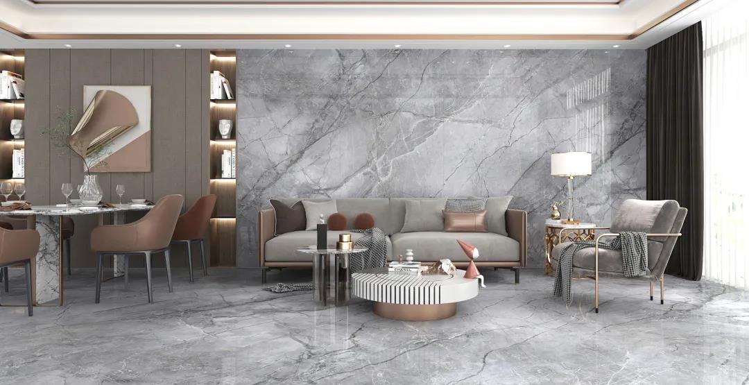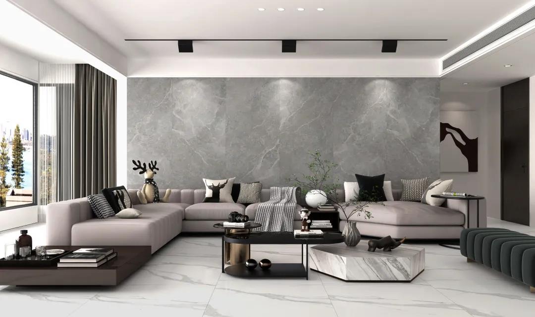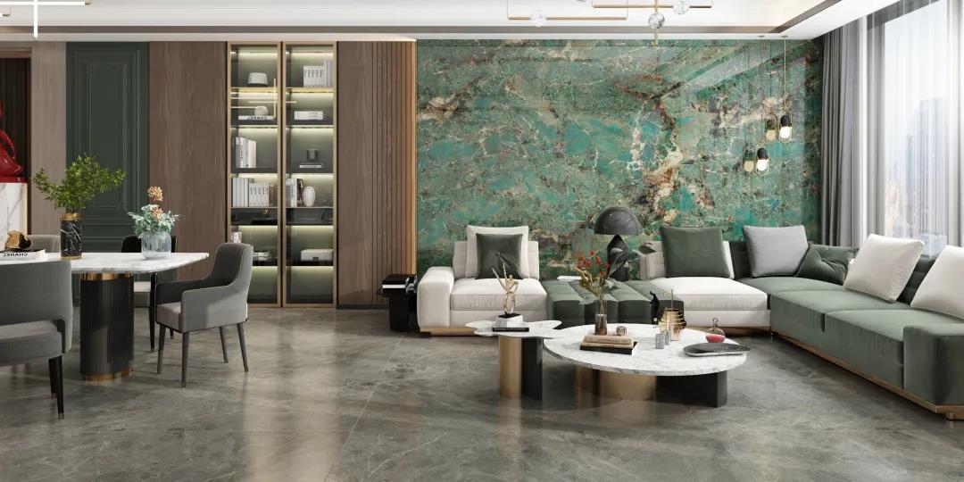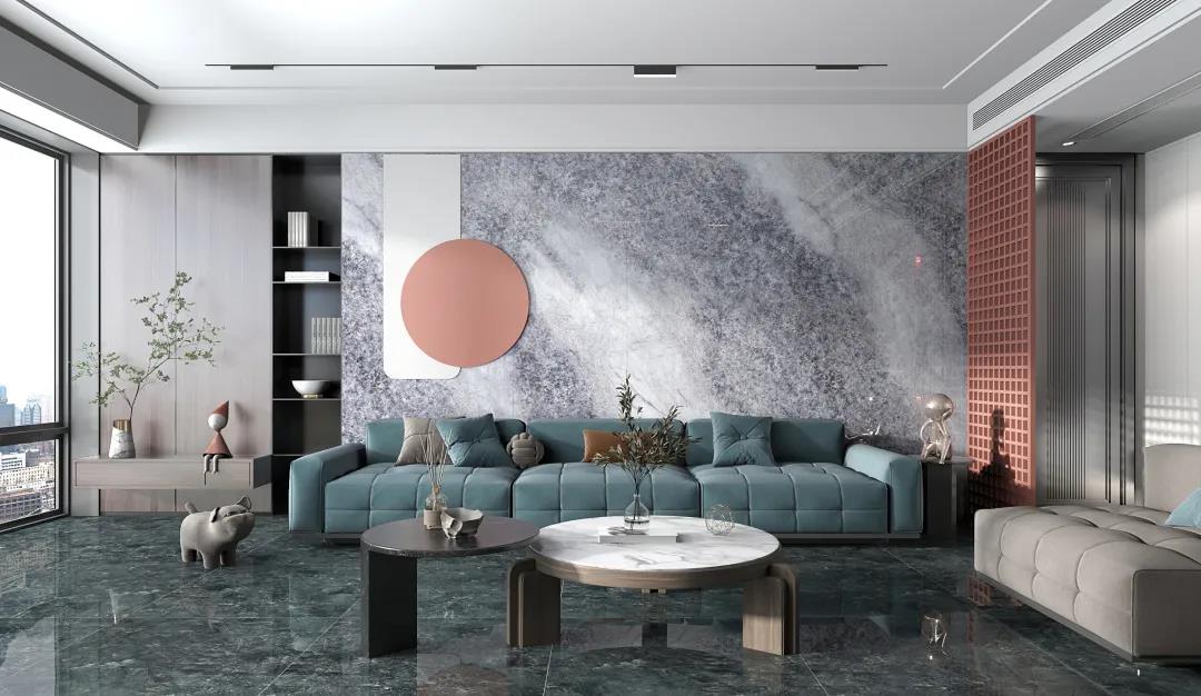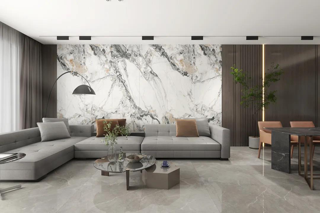 背景墻的裝飾材料種類多樣,有墻紙、硅藻泥、天然石材、皮革軟包,以及近幾年大熱的大理石瓷磚和巖板。大理石瓷磚、柔光磚和巖板加工簡單、造型多樣、鋪貼簡單、性價(jià)比高、后期打理方便,成為了家居背景墻的首選材料。